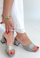 Scarpax Luart Altın Simli 7 cm Topuklu Terlik - Rahat İç Taban ve Standart Kalıp