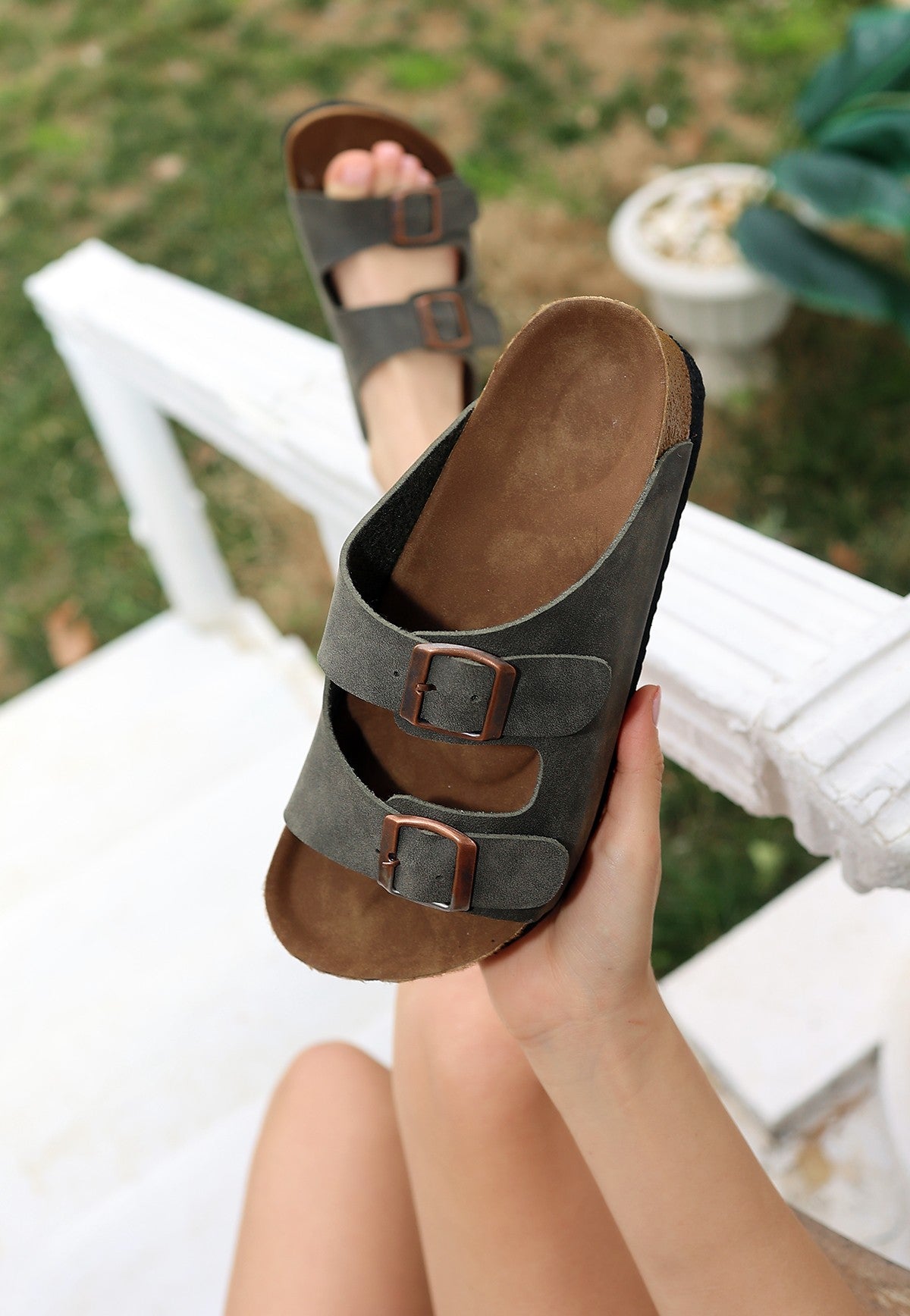 Terliğin haki yeşil rengi, her türlü kıyafetle uyum sağlar ve yazın ferahlık veren bir görünüm sunar. Yumuşak nubuk malzeme, ayaklarınızın her hareketinde rahatlık sağlar. Bu özel terlik, hem de hem de şıklığı ile öne çıkıyor.