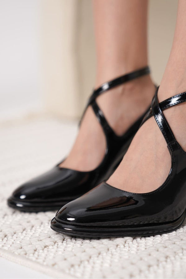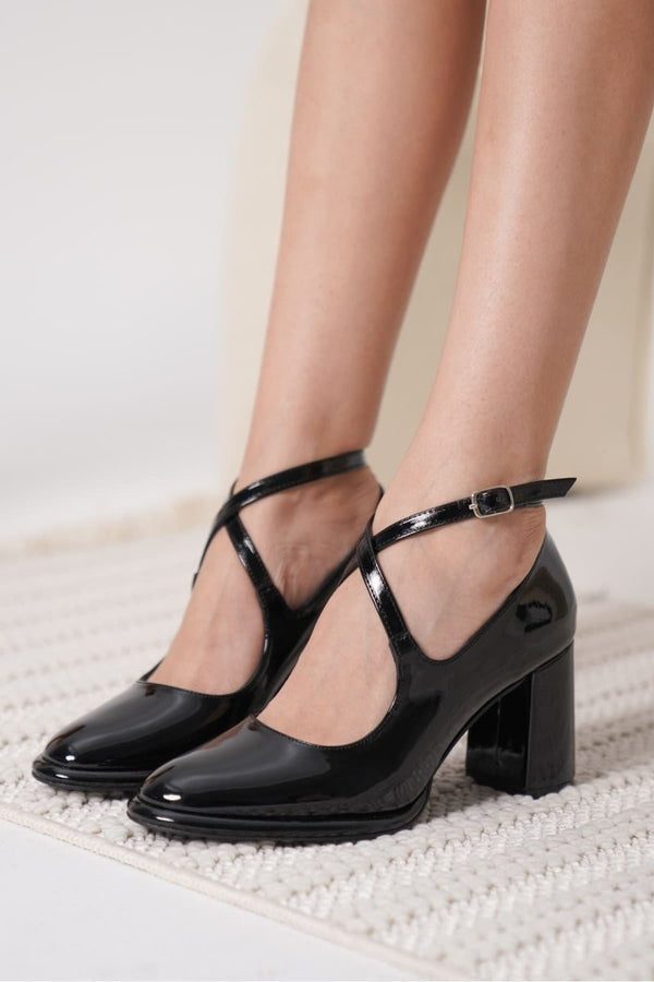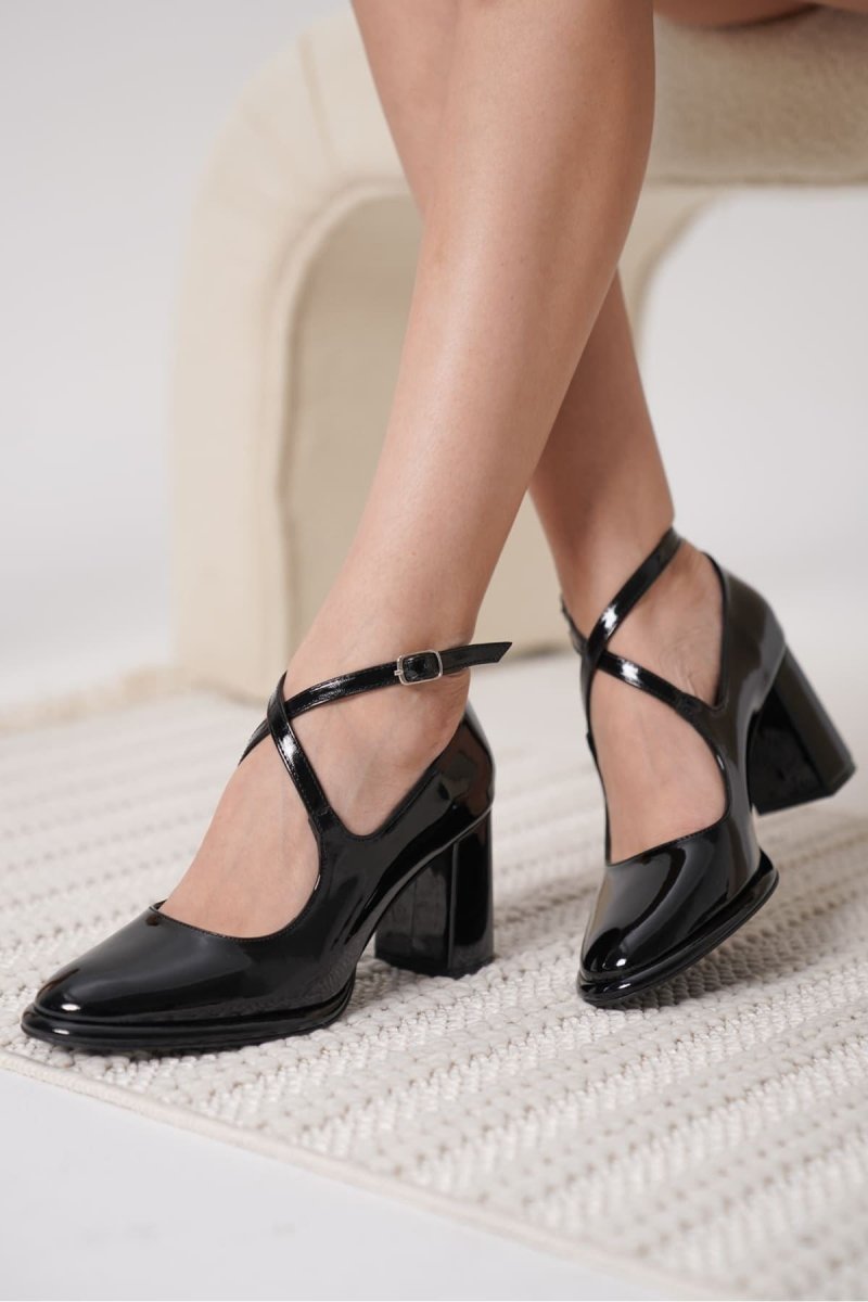 Scarpax Cali Siyah Rugan Kadın Topuklu Ayakkabı