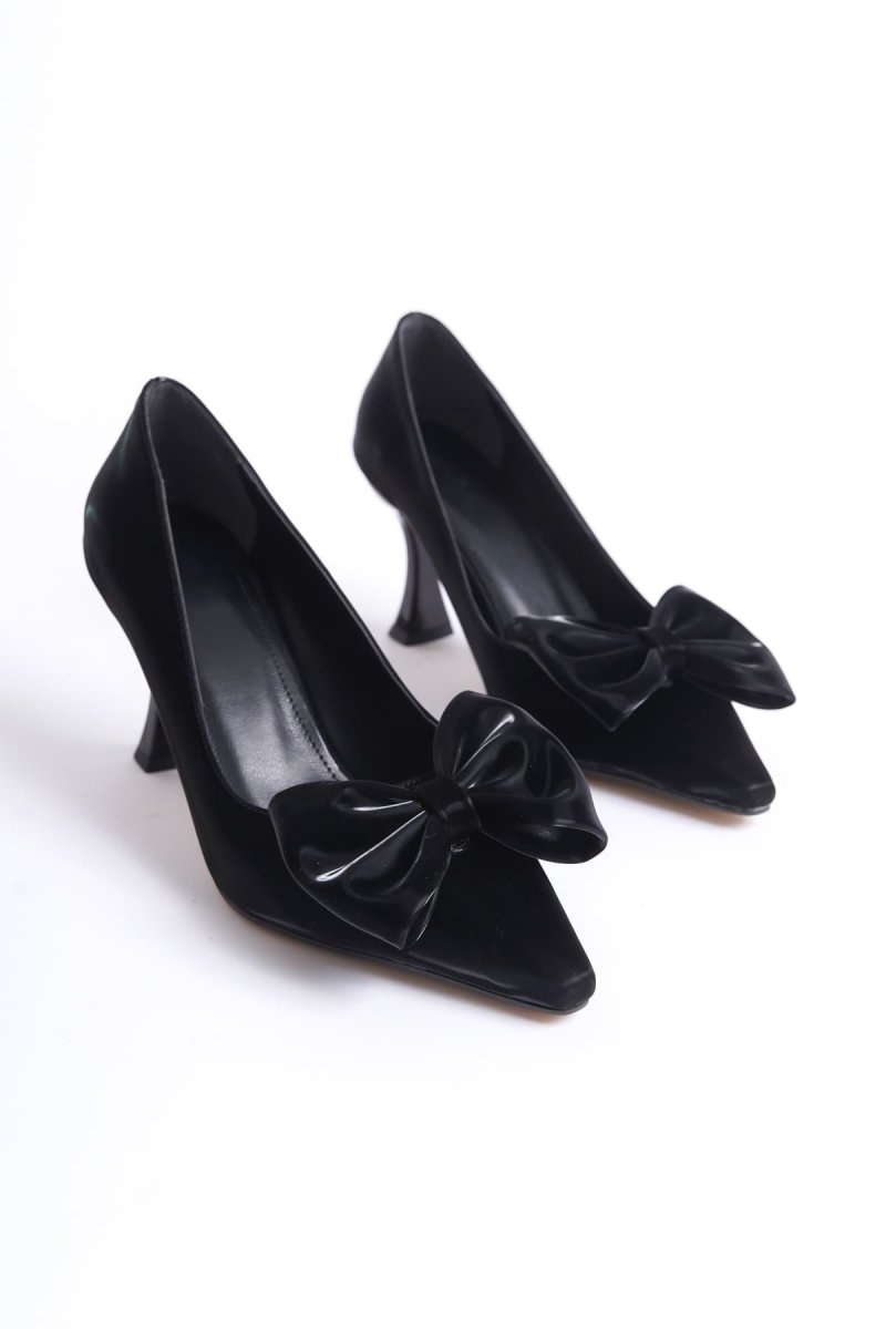 Scarpax Agnes Kadın Siyah Topuklu Ayakkabı - Fiyonk Detaylı Şık ve Rahat Tasarım