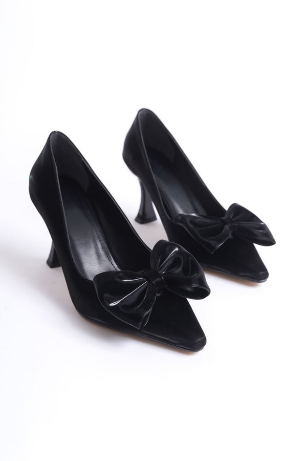 Scarpax Agnes Kadın Fiyonk Detaylı Siyah Topuklu Ayakkabı
