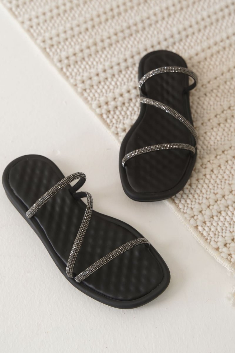 Scarpax Alba Siyah Kadın Taşlı Terlik - Şık Tasarım, Konforlu Kullanım ve Kaymaz Altlık