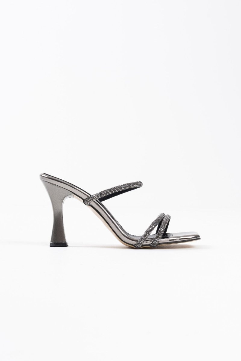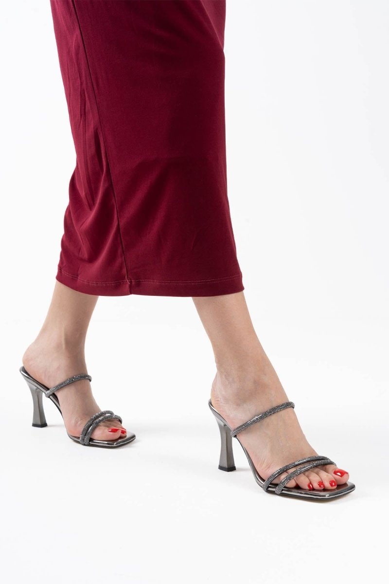 Scarpax Alvina Füme Ayna Taşlı Kadın Topuklu Terlik - Konforlu ve Şık Tasarım