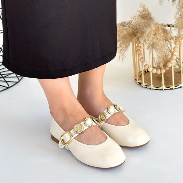 Scarpax Atnis Bej Cilt Babet Ayakkabı 1 cm Topuklu Ortabedik Tabanlı Dar Kalıp