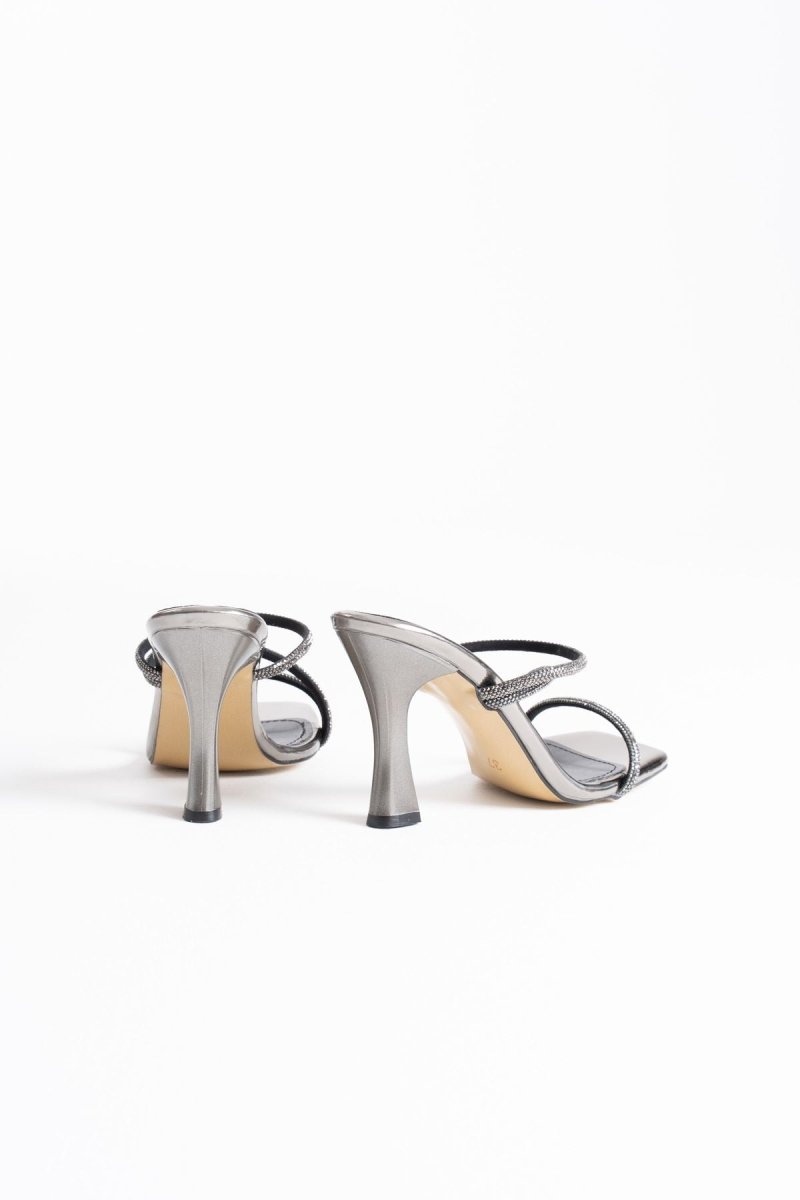 Scarpax Capella Platin Renkli Taşlı Kadın Topuklu Terlik - Şık ve Rahat Tasarım