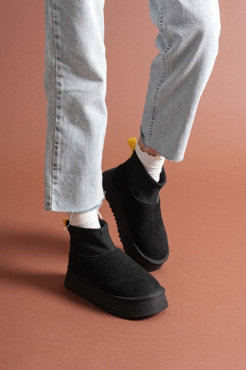 Scarpax Cuen Siyah Süet Bot - İç Kürklü, Streçli, 4 cm Topuk, Poli Taban