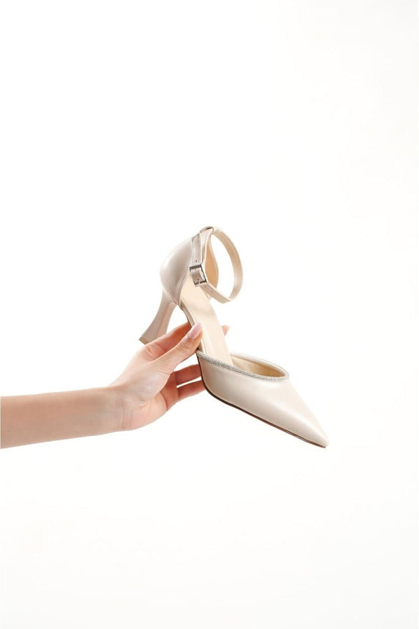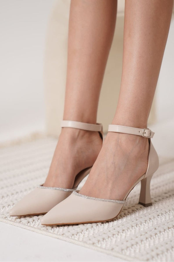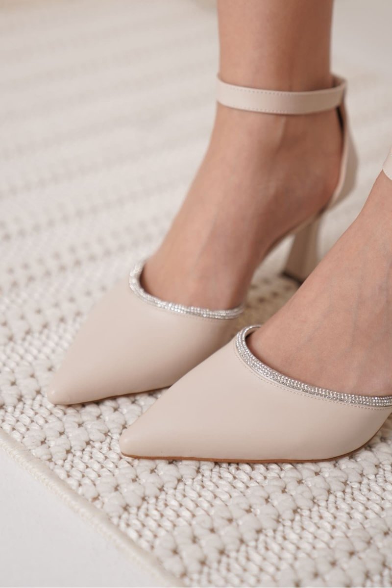 Scarpax Darla Bej Taşlı Kadın Topuklu Ayakkabı - Şık ve Trendy Tasarım