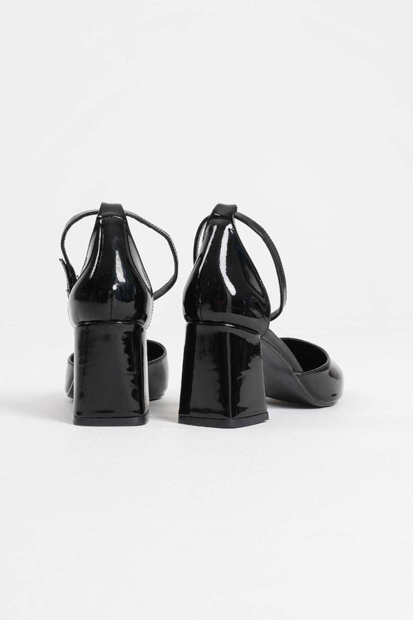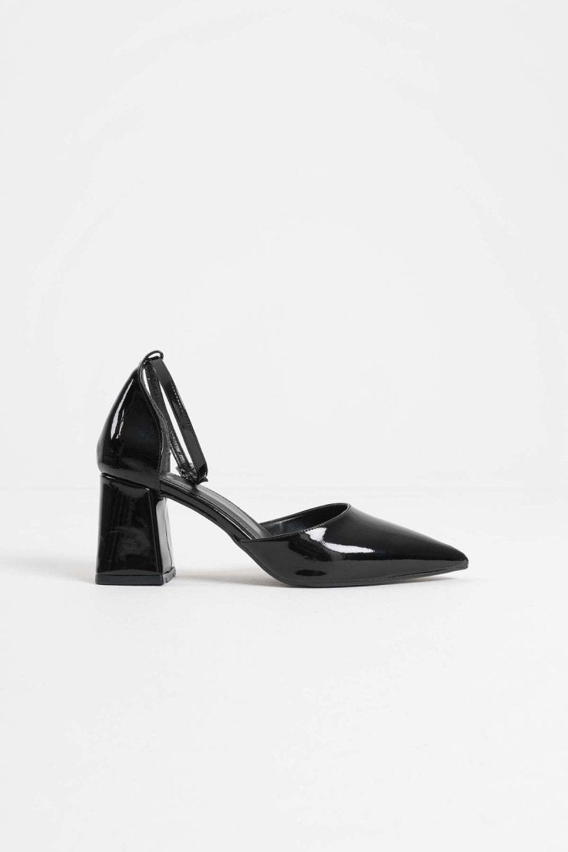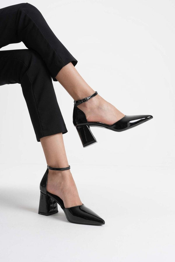 Doren Siyah Rugan Kadın Topuklu Ayakkabı, ofiste, akşam yemeğinde veya özel bir etkinlikte dikkat çekmenizi sağlar. Her türlü kıyafetle kolayca kombinlenebilir. Midi eteklerden, klasik pantolonlara kadar geniş bir zarafet yelpazesi sunar.