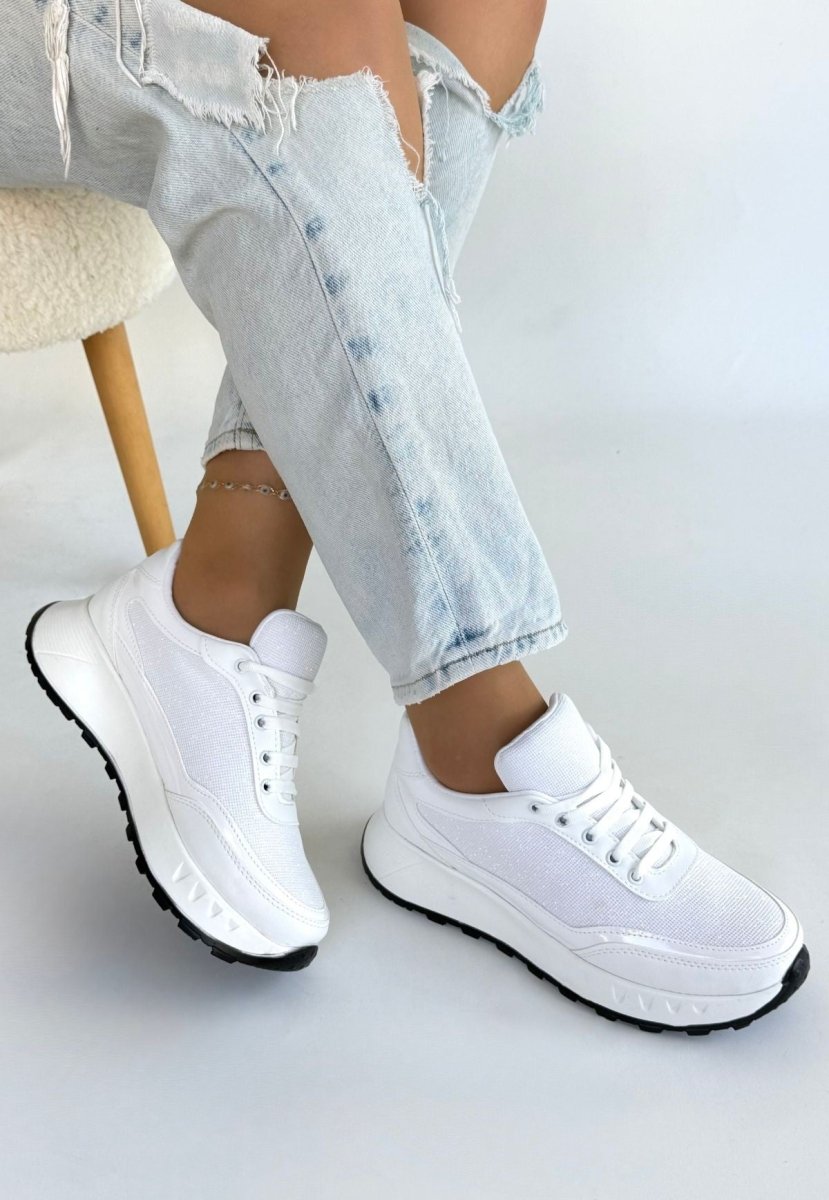 Scarpax Edva Beyaz Bağcıklı Ortopedik Spor Ayakkabı - 3 cm Topuk, Faylon Taban