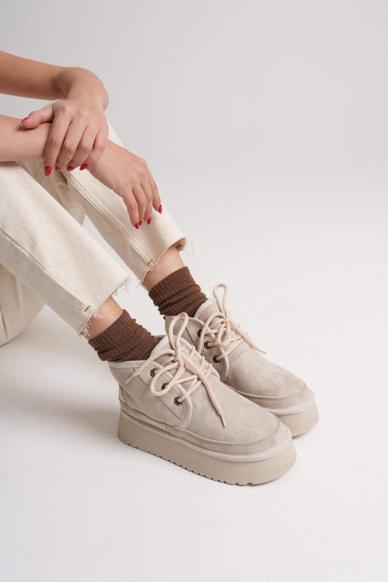 Scarpax Elena Kadın Bej Kışlık Bot - Kürklü İç Aksam ve Kalın Taban Tasarımı