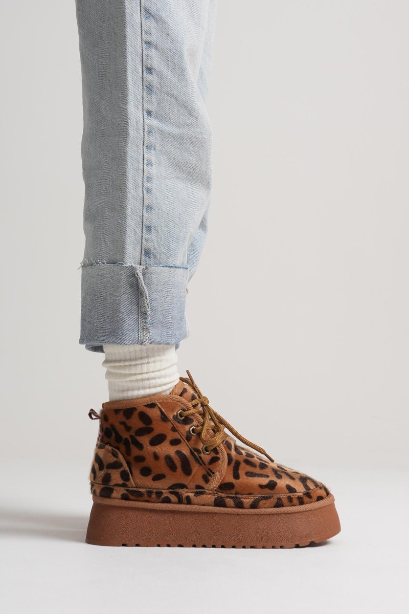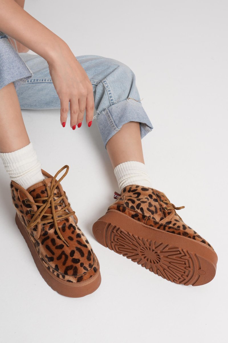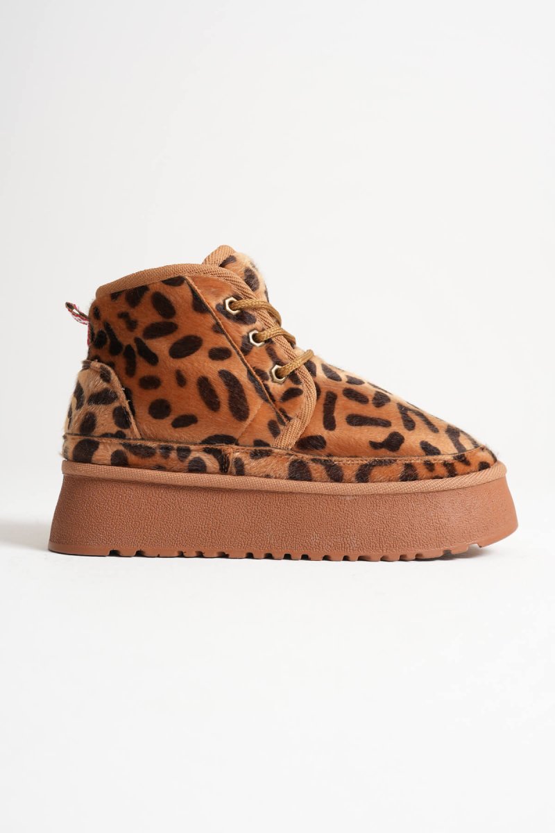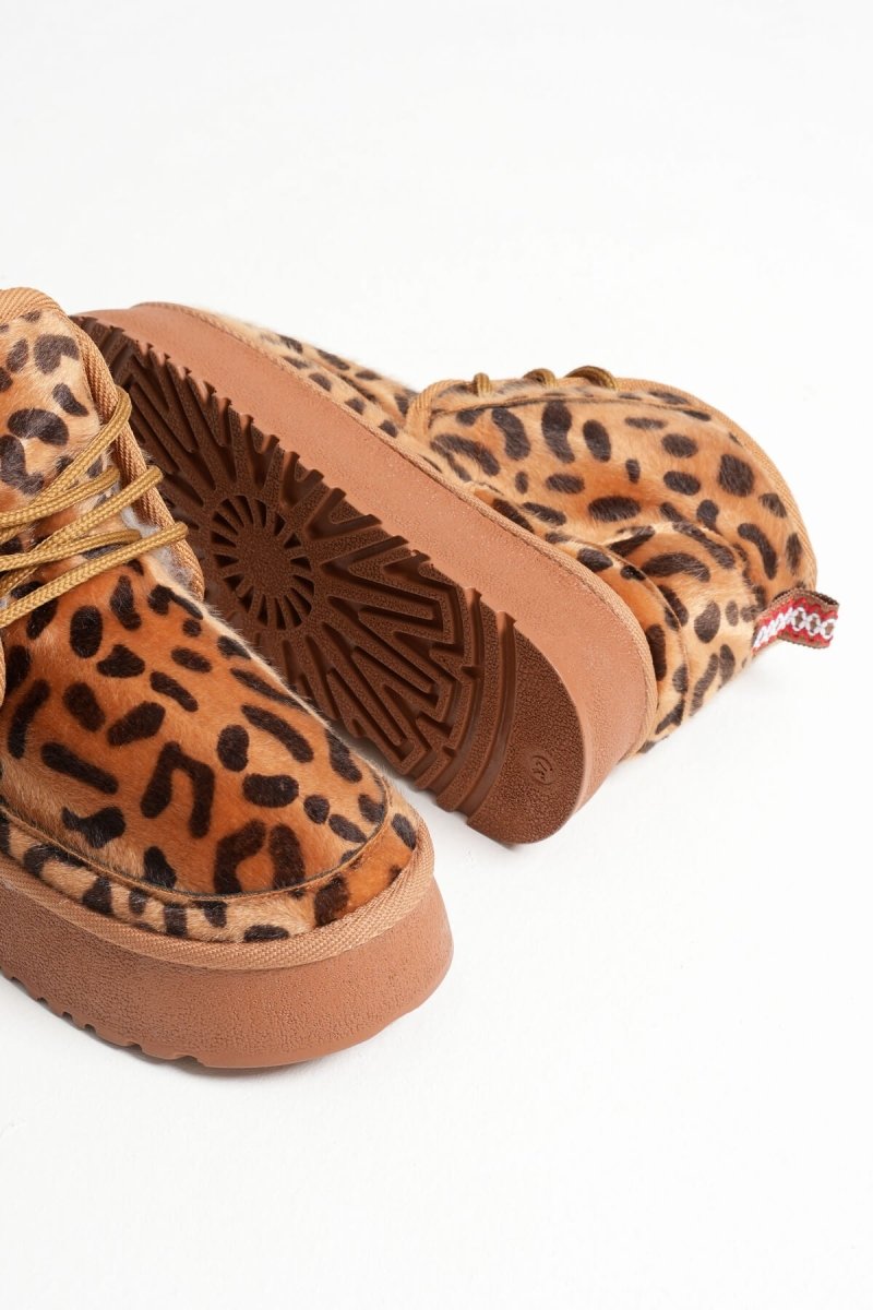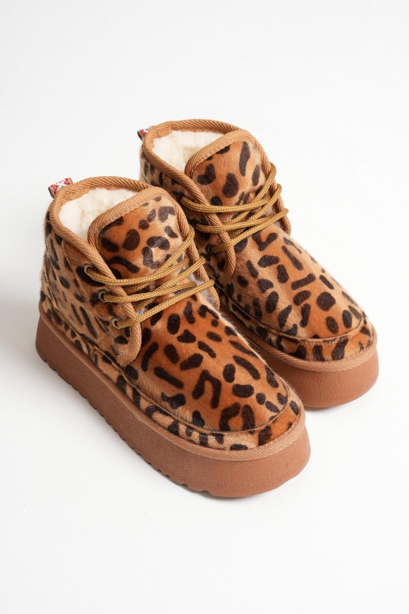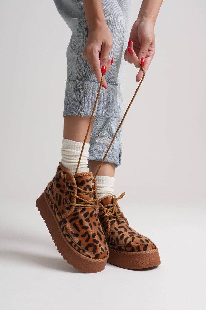 Scarpax Elena Kadın Kışlık Bot - İçi Kürklü, Kalın Taban, Leopar Desen