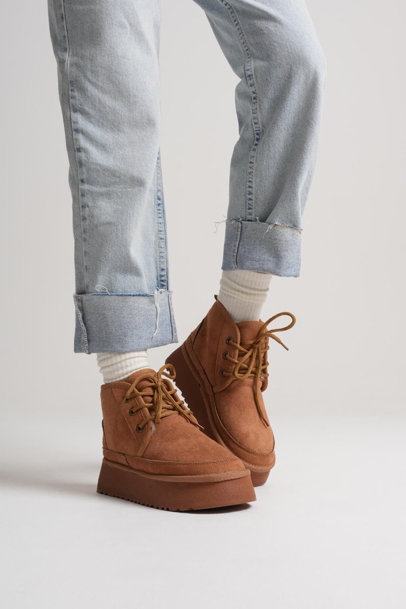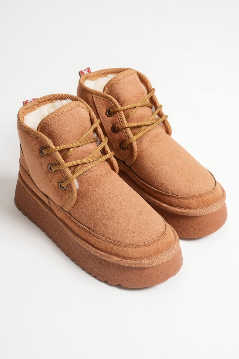 Scarpax Elena Kadın Taba Kışlık Bot - Kürklü İçi ve Kalın Taban Özellikli