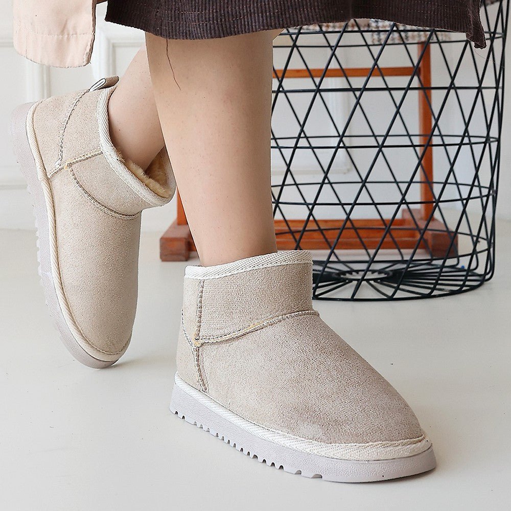 Scarpax Elsa Bej Süet Bot - Kürklü İç Taban, 1 cm Topuk, Standart Kalıp