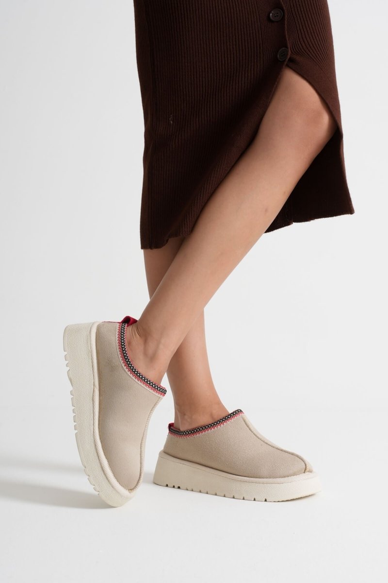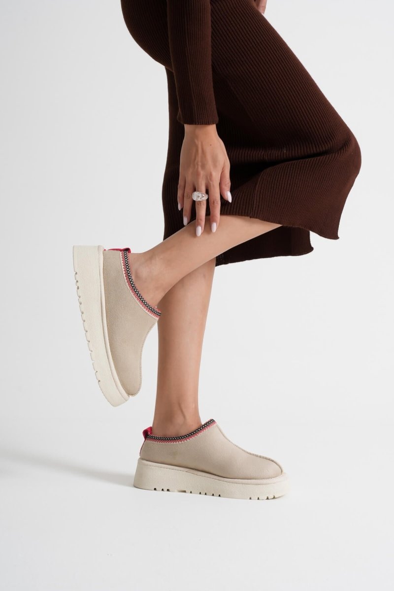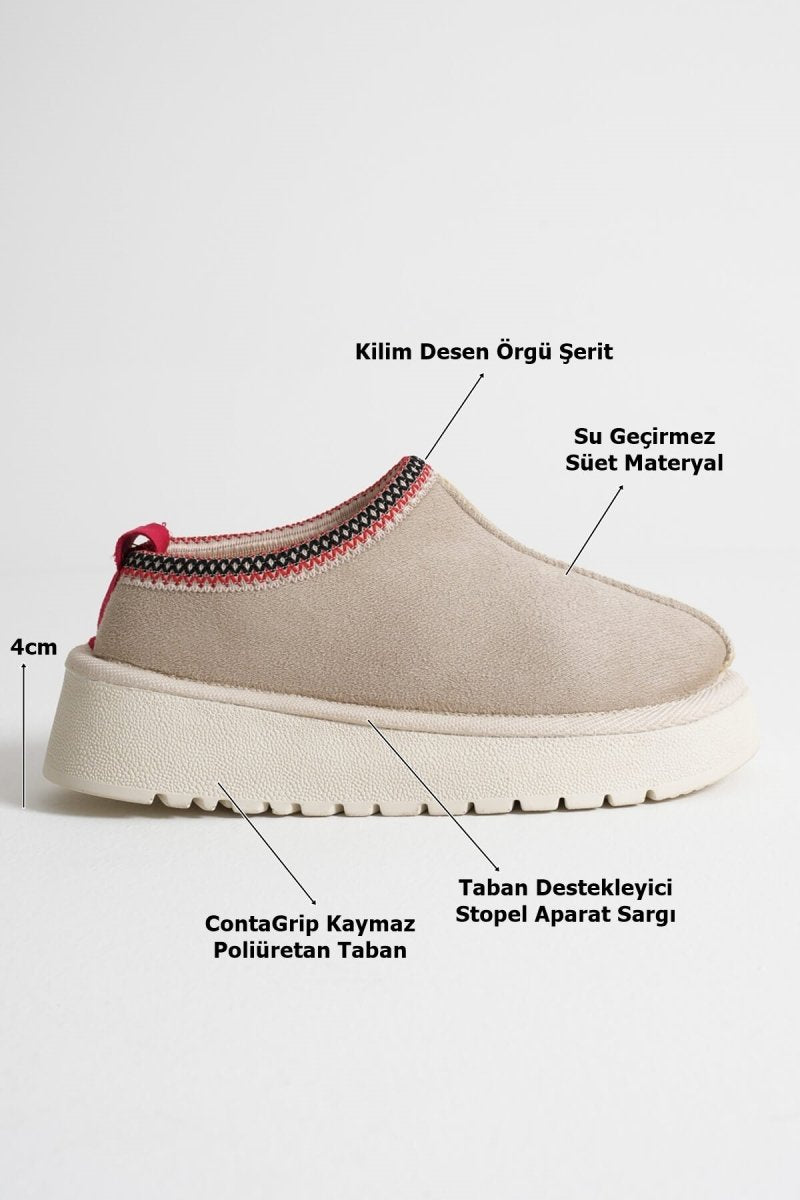 Scarpax Elsa Bej Kadın Kışlık Kürklü Terlik - Rahat ve Şık Tasarım
