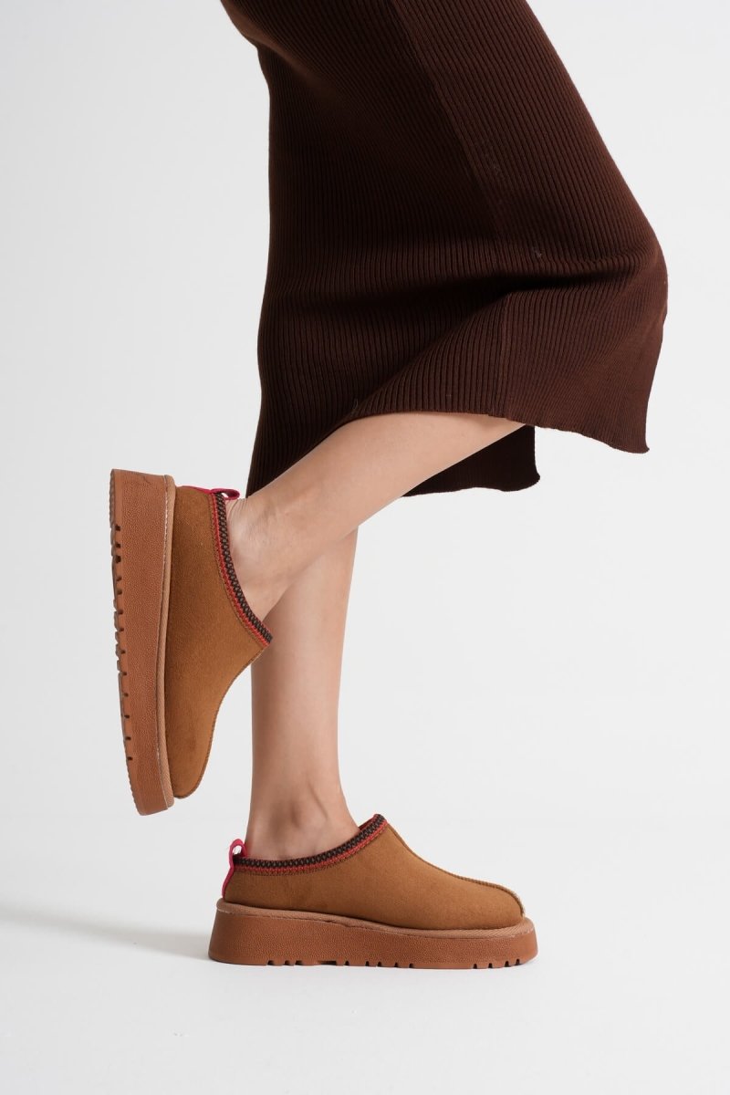 Scarpax Elsa Kadın Taba Kışlık Kürklü Terlik - Rahat ve Şık Kış Ayakkabısı