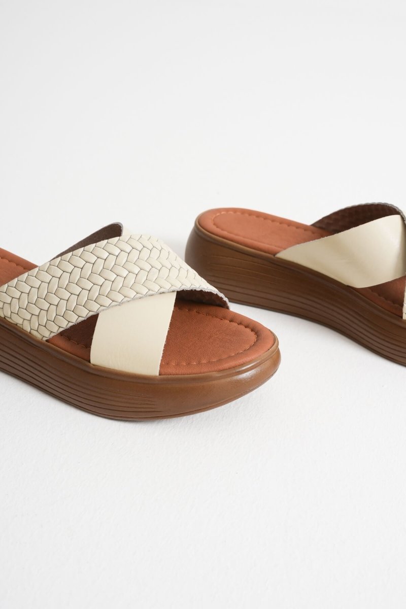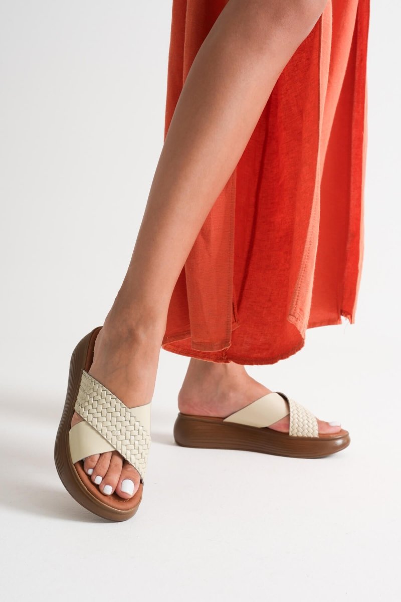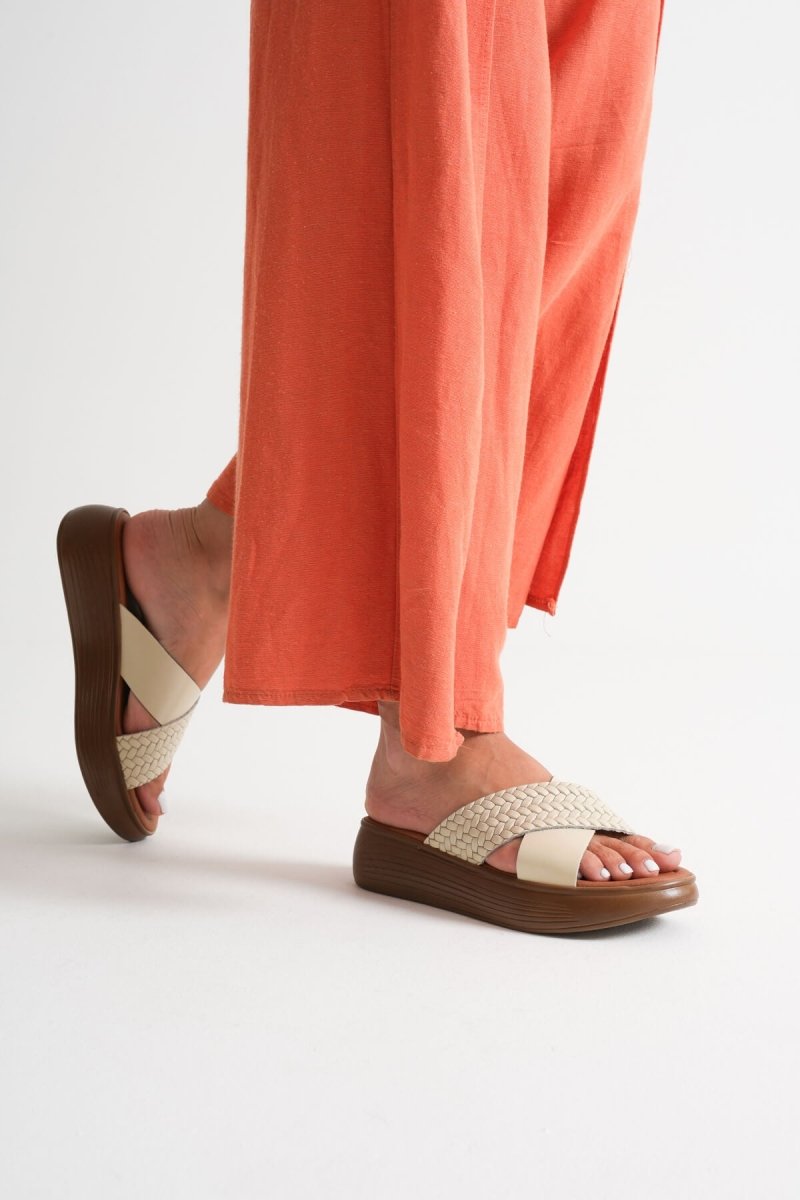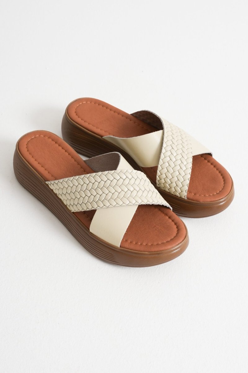 Scarpax Fayn Bej Hakiki Deri Terlik - Rahat ve Şık Yaz Ayakkabısı