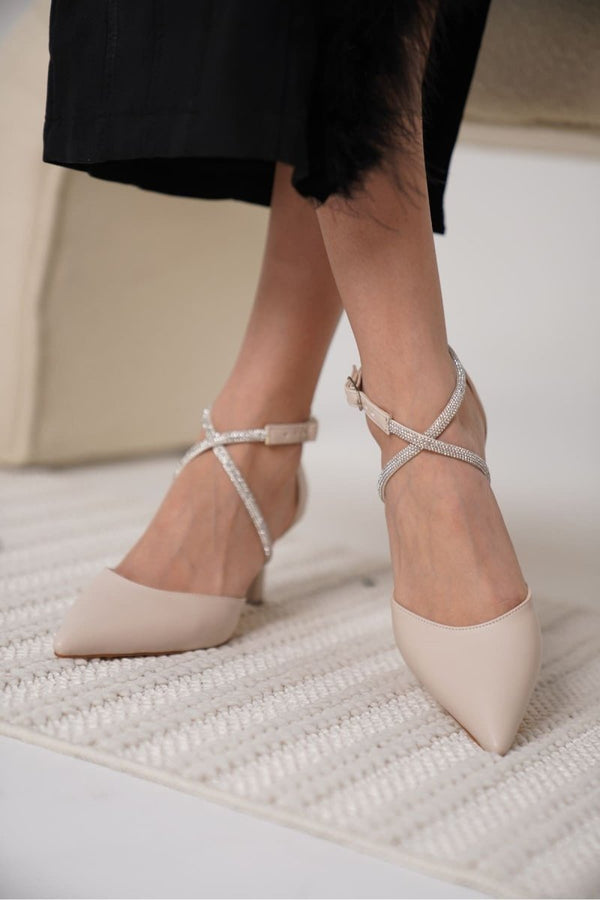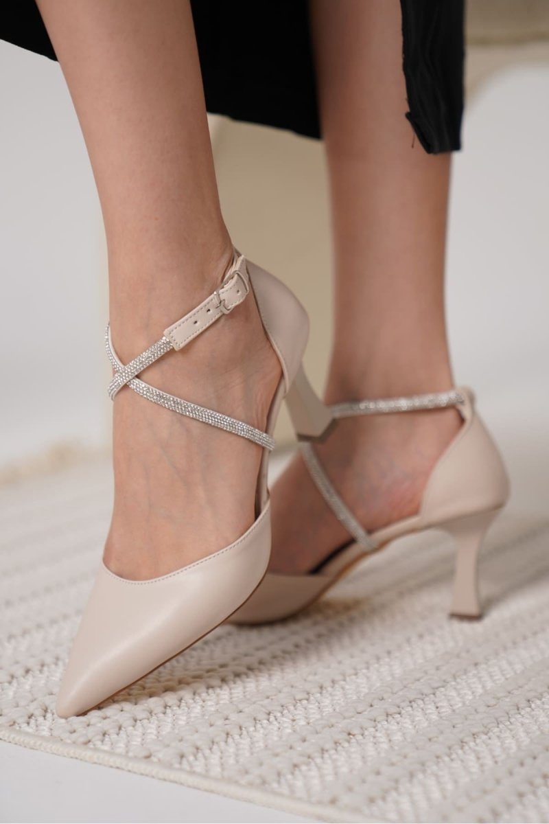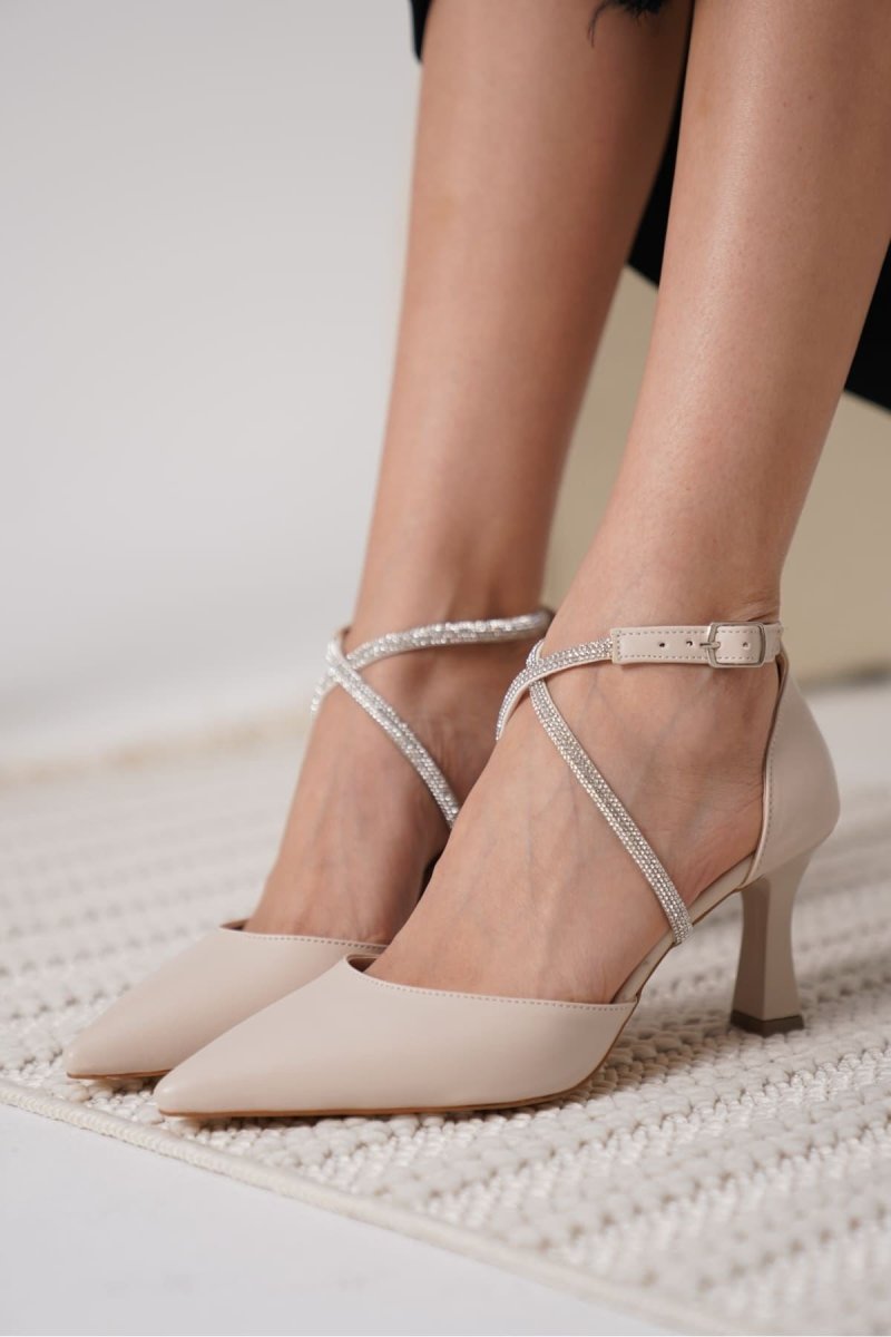 Scarpax Fiona Taşlı Kadın Bej Topuklu Ayakkabı - Şık ve Zarif Tasarım, Konforlu Kullanım