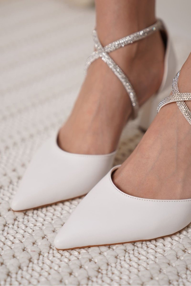 Scarpax Fiona Taşlı Kadın Beyaz Topuklu Ayakkabı - Şık ve Rahat Tasarım