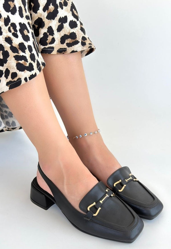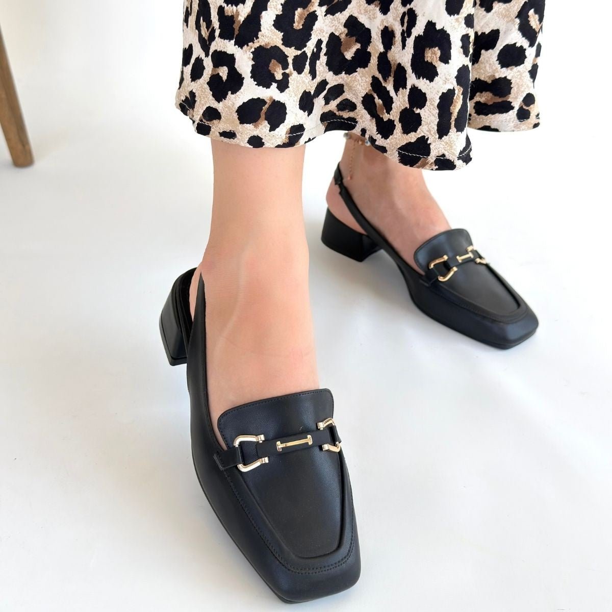 Scarpax Joone Siyah Cilt Topuklu Ayakkabı - 3 Cm Topuk, Jurdan Taban, Standart Kalıp