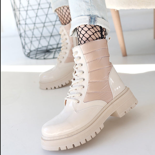 Scarpax Josse Bej 3cm Topuklu Yandan Fermuarlı Bağcıklı Bot, Standart Kalıp