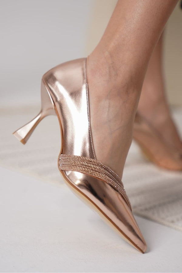 Scarpax Klay Kadın Topuklu Ayakkabı - Şık Rose Gold Rugan Tasarım