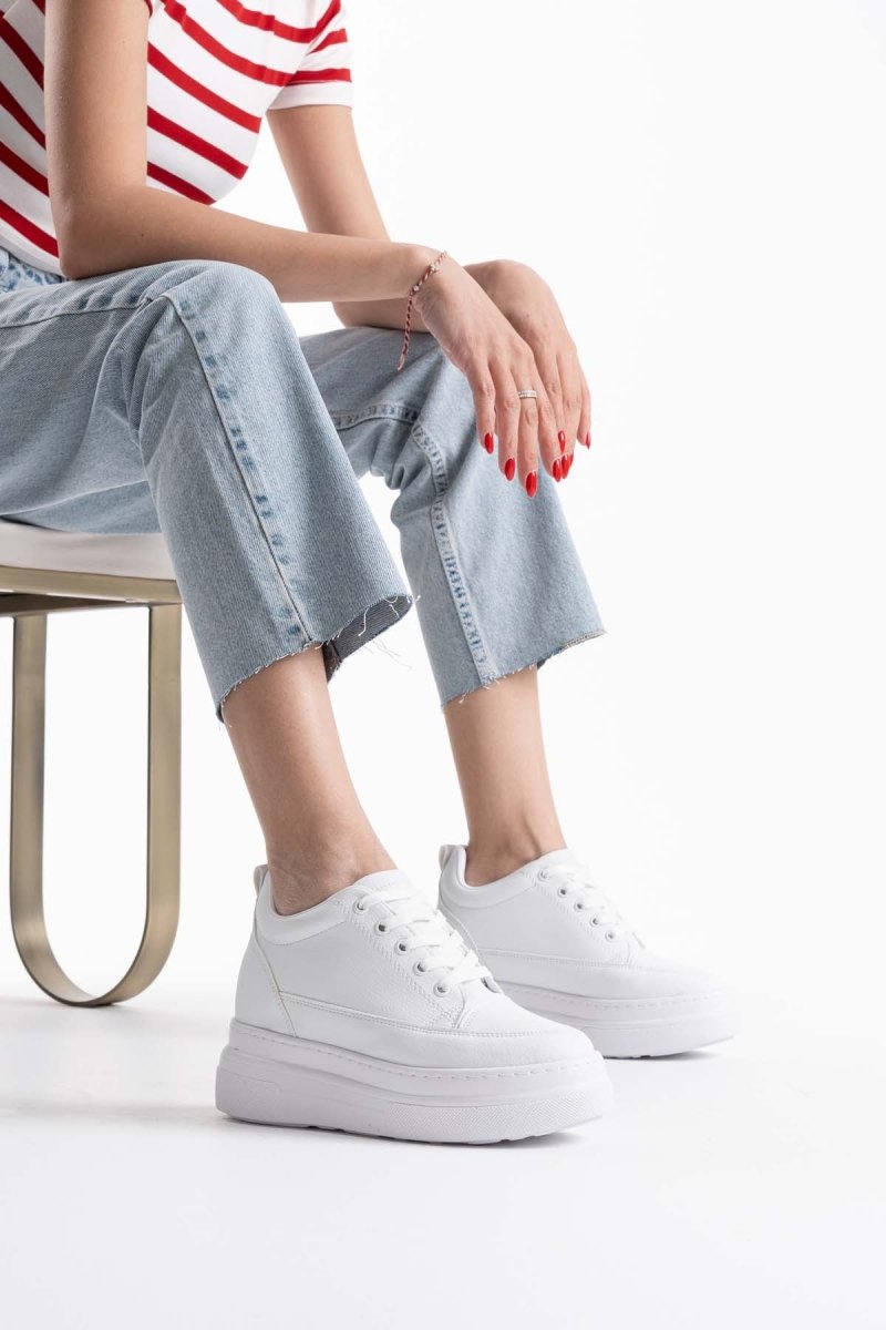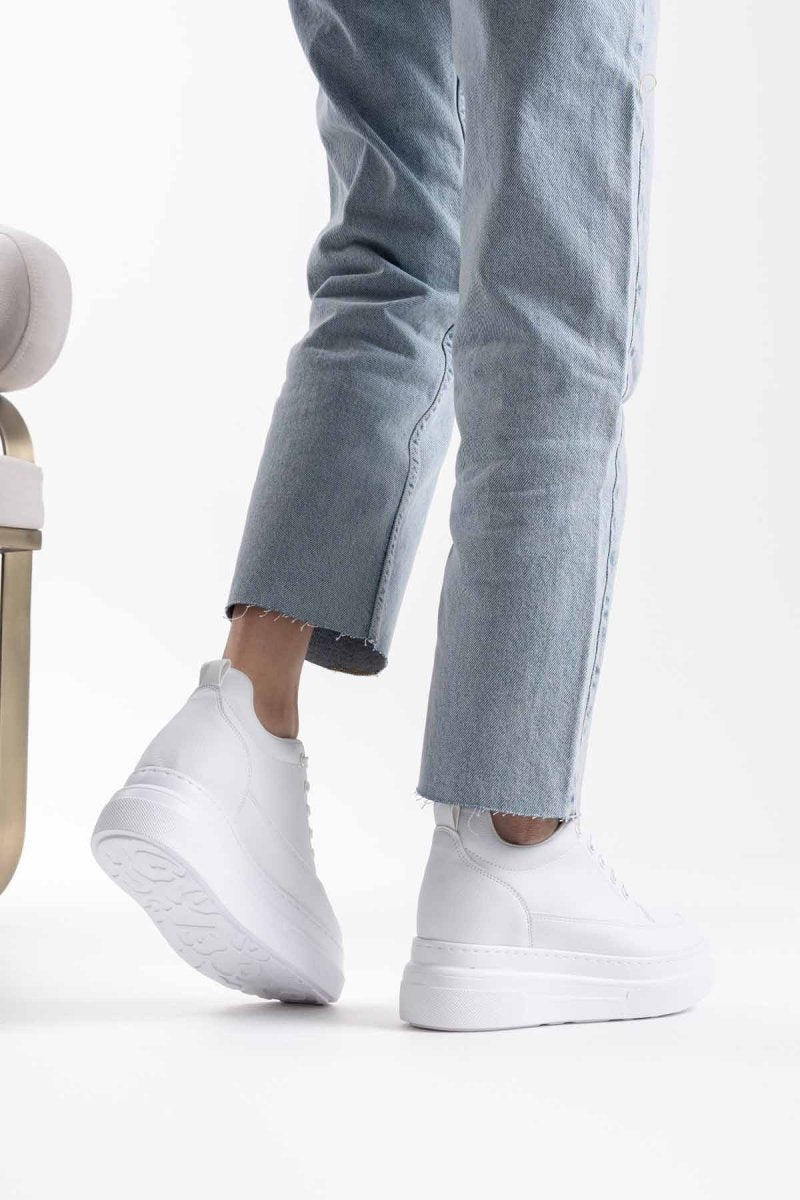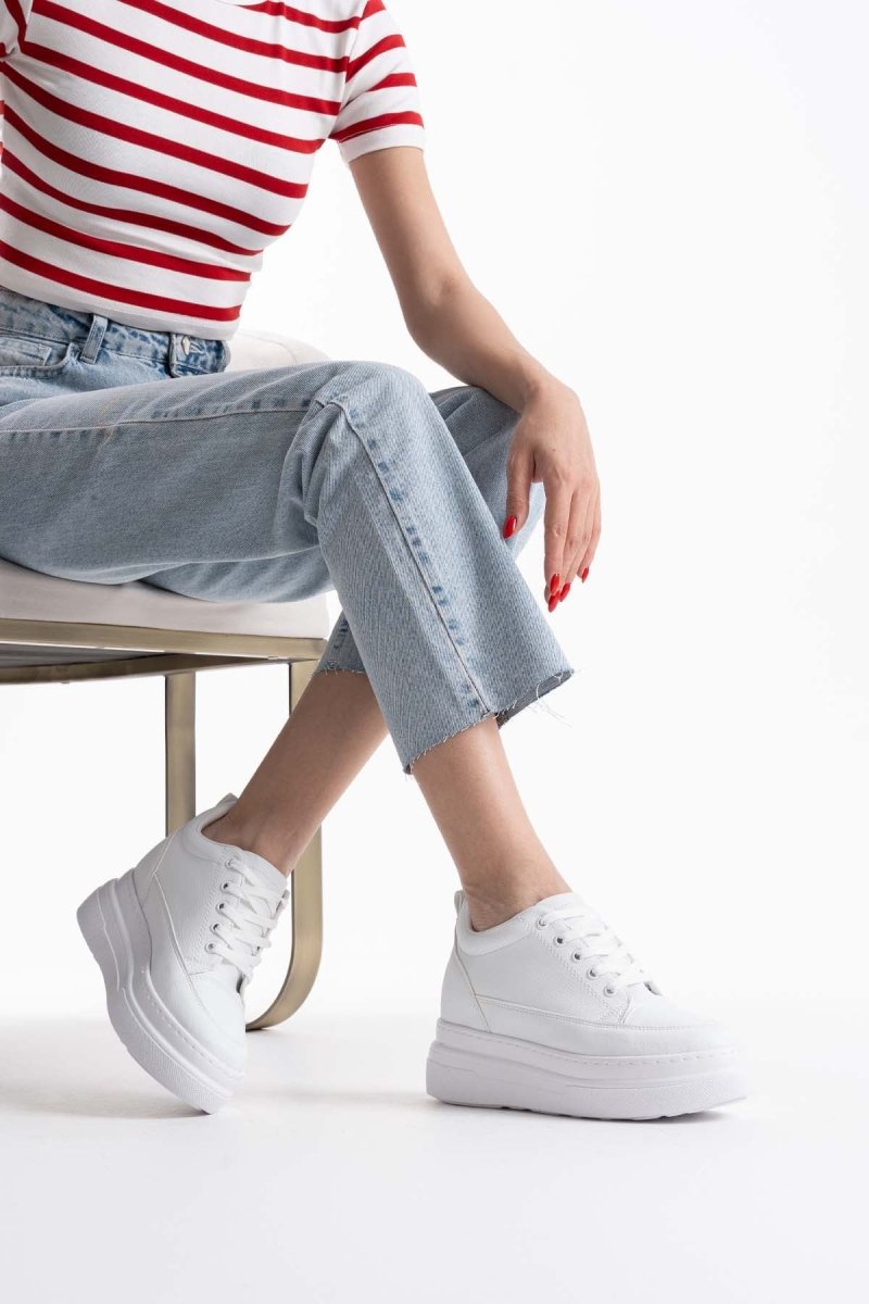 SCARPAX Lauren Kadın Gizli Topuklu Mat Beyaz Spor Ayakkabı - Konforlu ve Şık Tasarım