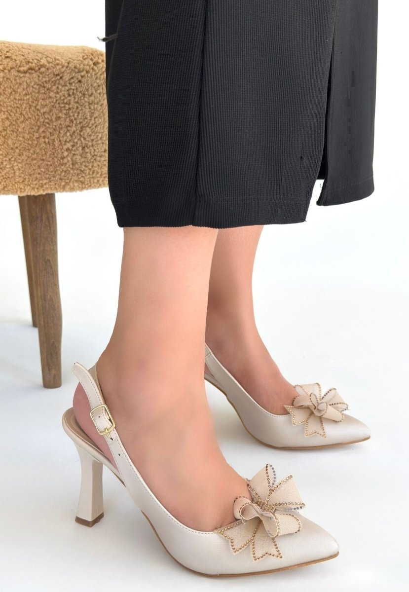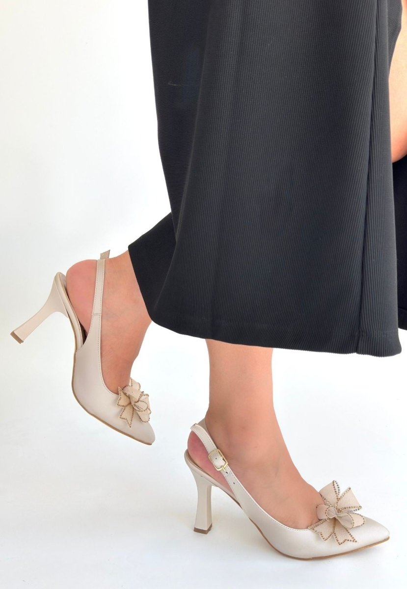 Scarpax Mewi Bej Saten Topuklu Ayakkabı