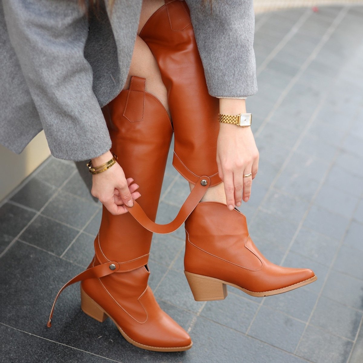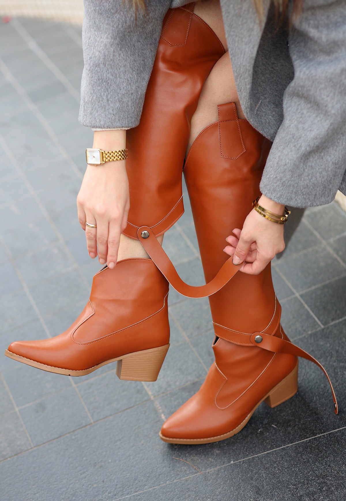 Scarpax Milla Taba Cilt Tak Çıkar Topuklu Bot Ve Çizme