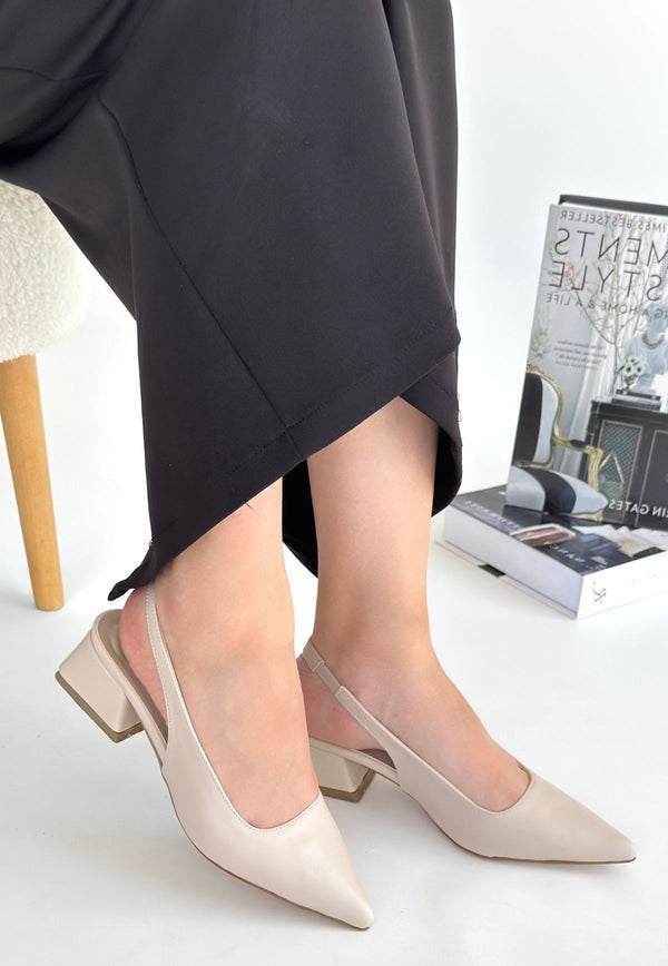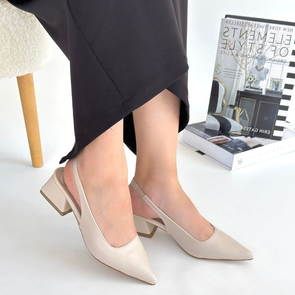 Scarpax Morji Bej Cilt Topuklu Ayakkabı