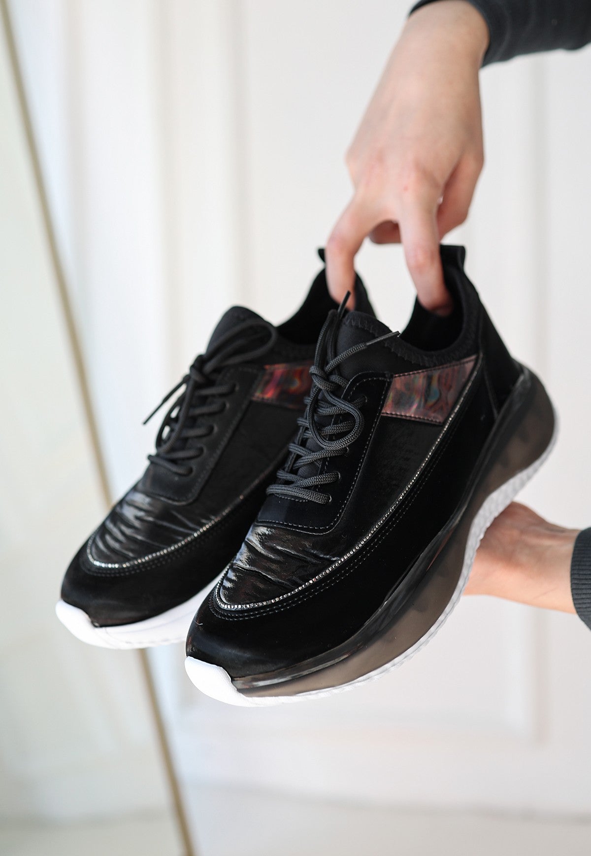 Scarpax Nadio Siyah Rugan Bağcıklı Spor Ayakkabı