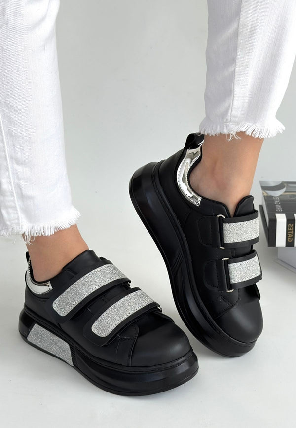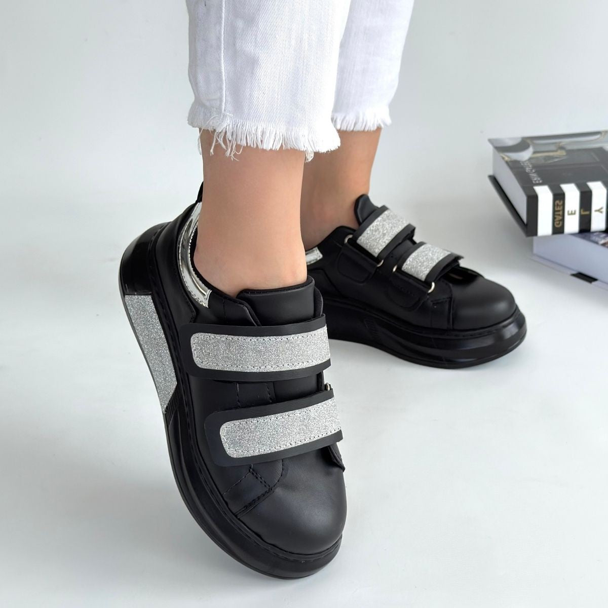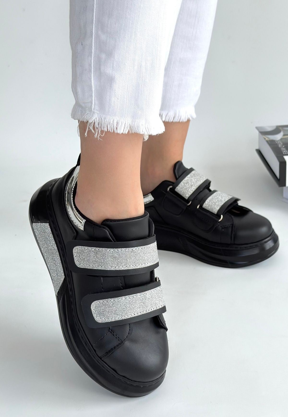 Scarpax Nino Siyah Cilt Simli Cırt Cırtlı Spor Ayakkabı