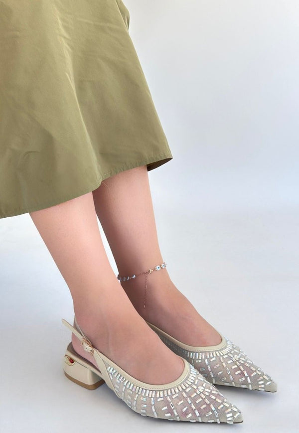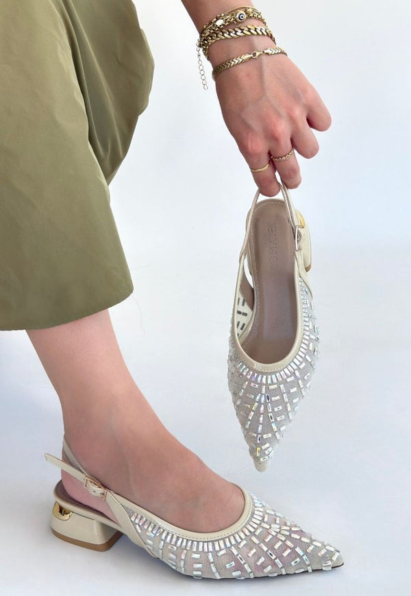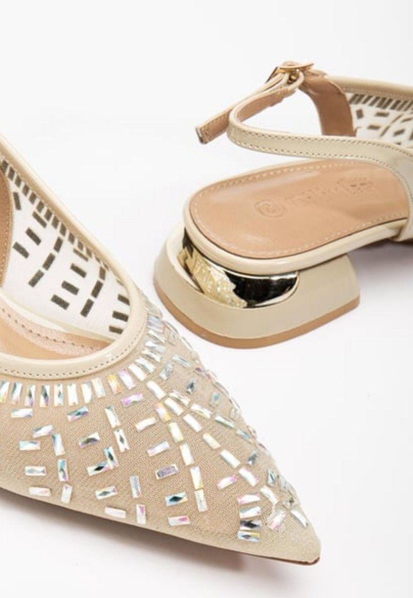 Scarpax Piyar Bej Taşlı Topuklu Ayakkabı