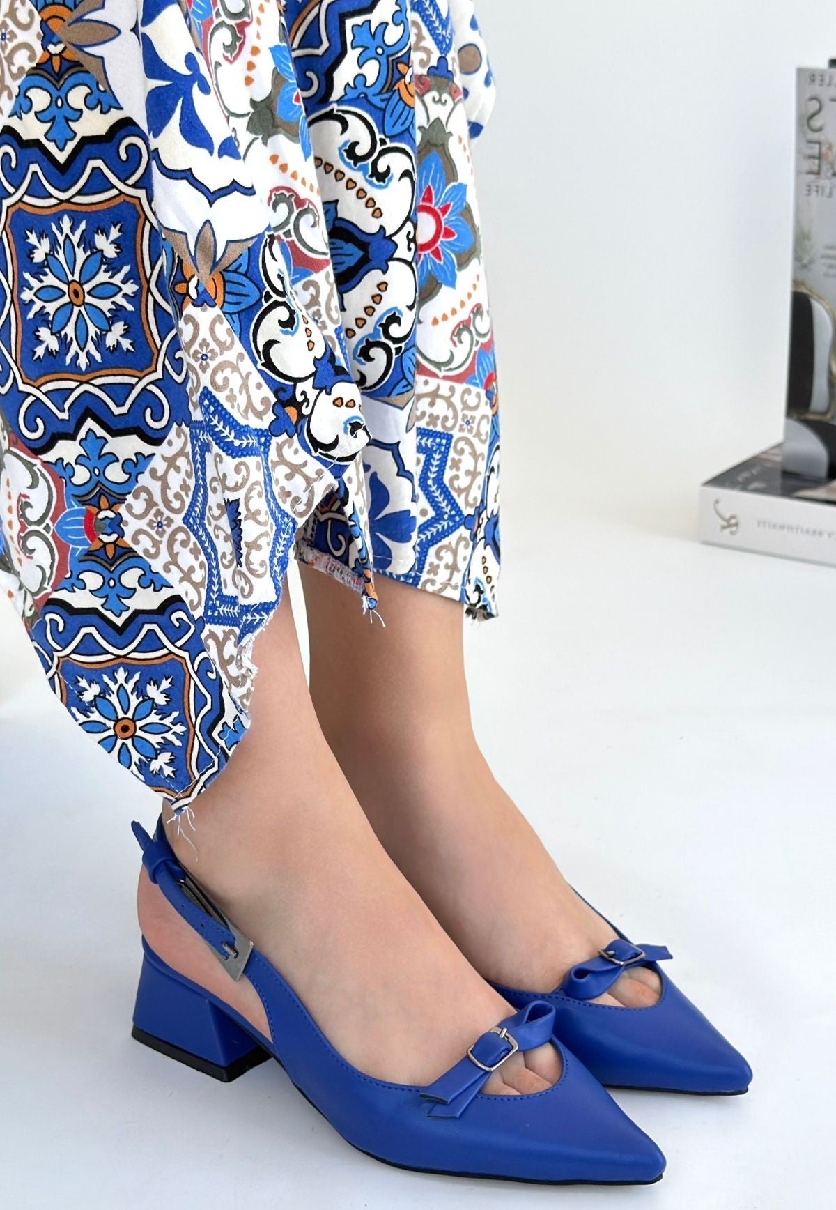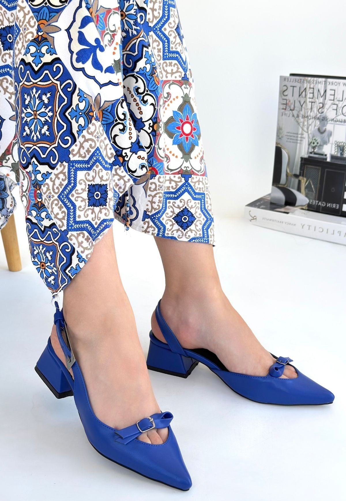 Scarpax Rewat Mavi Cilt Topuklu Ayakkabı