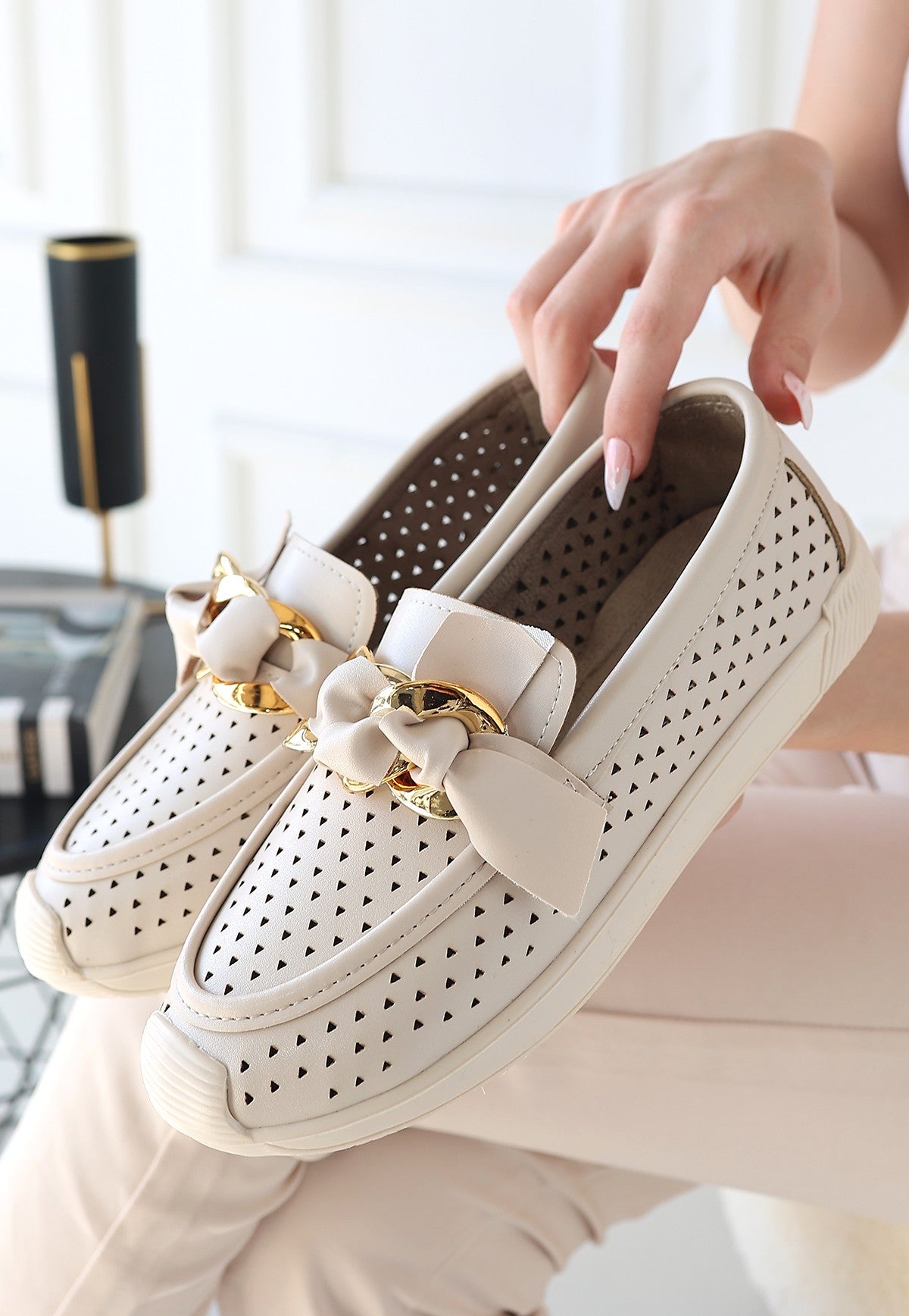 Scarpax Riwan Bej Cilt Babet Ayakkabı
