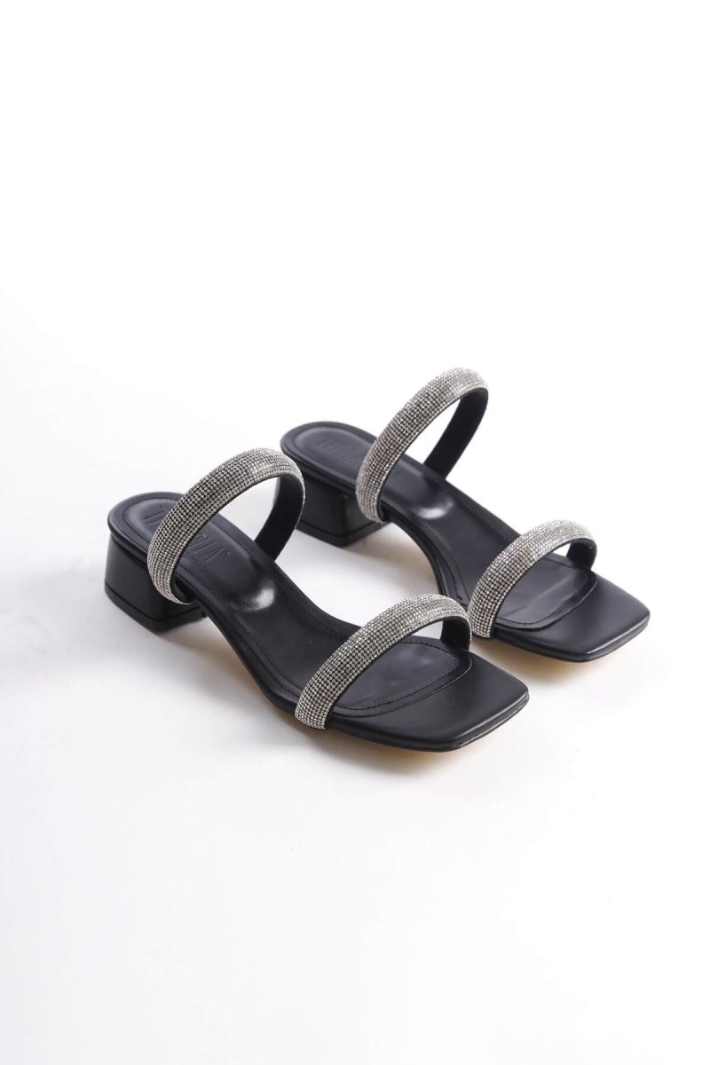 Scarpax Stella Kalın Topuklu Siyah Kadın Terlik