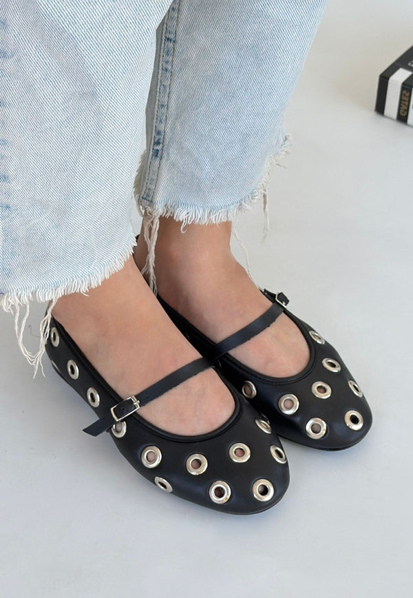 Bu babet ayakkabı, siyah rengiyle her kombin ile mükemmel uyum sağlar. İster ofiste ister sosyal etkinliklerde rahatlıkla kullanabilirsiniz. Modaya uygun görünümüne ek olarak, ayakkabının şu özellikleri dikkat çekicidir: