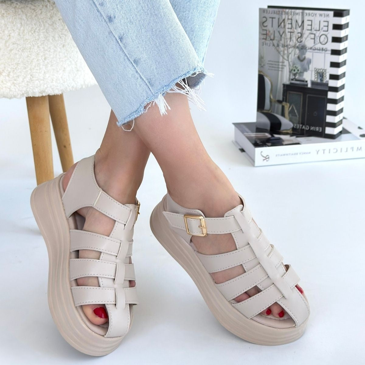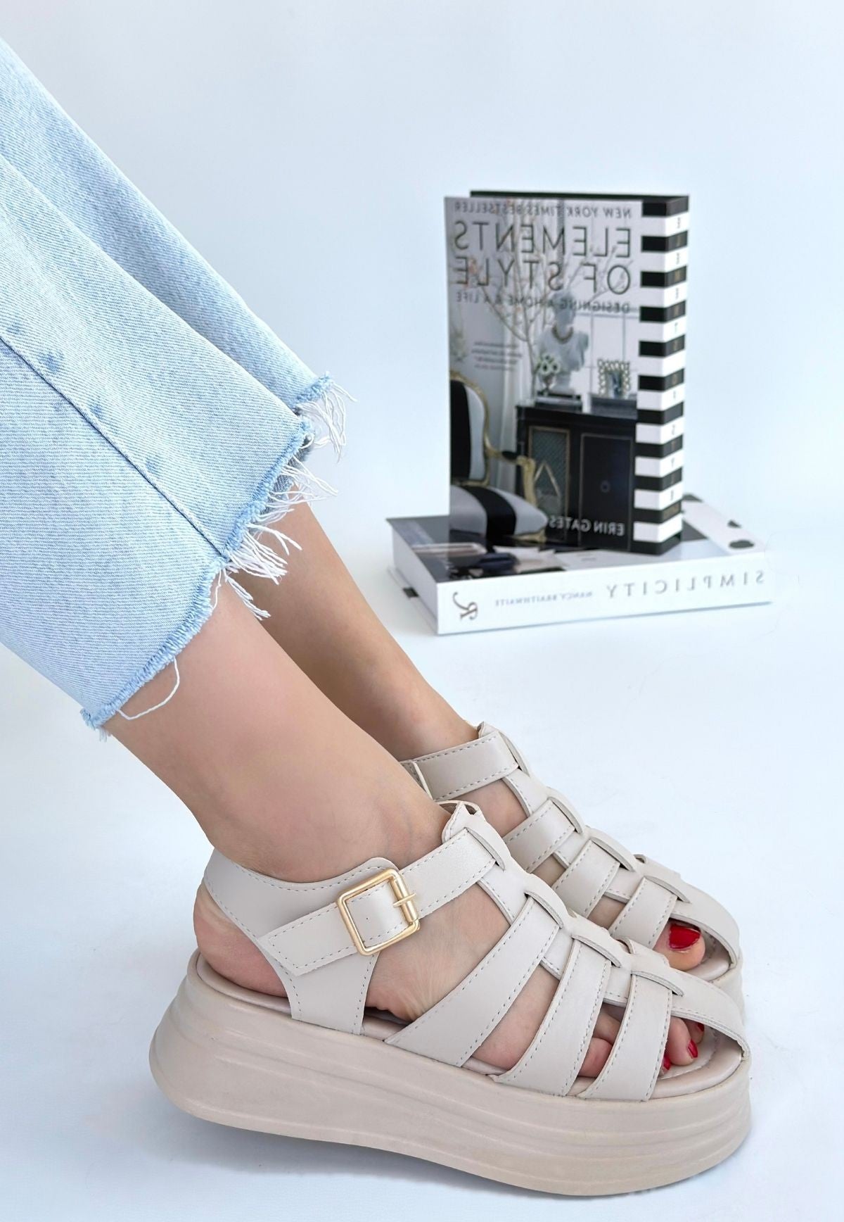 Scarpax Toten Bej Cilt Kemerli Sandalet