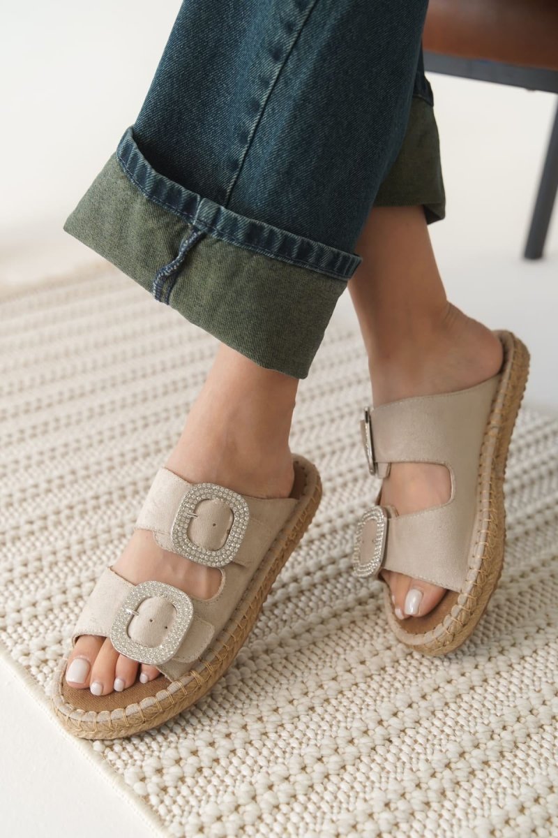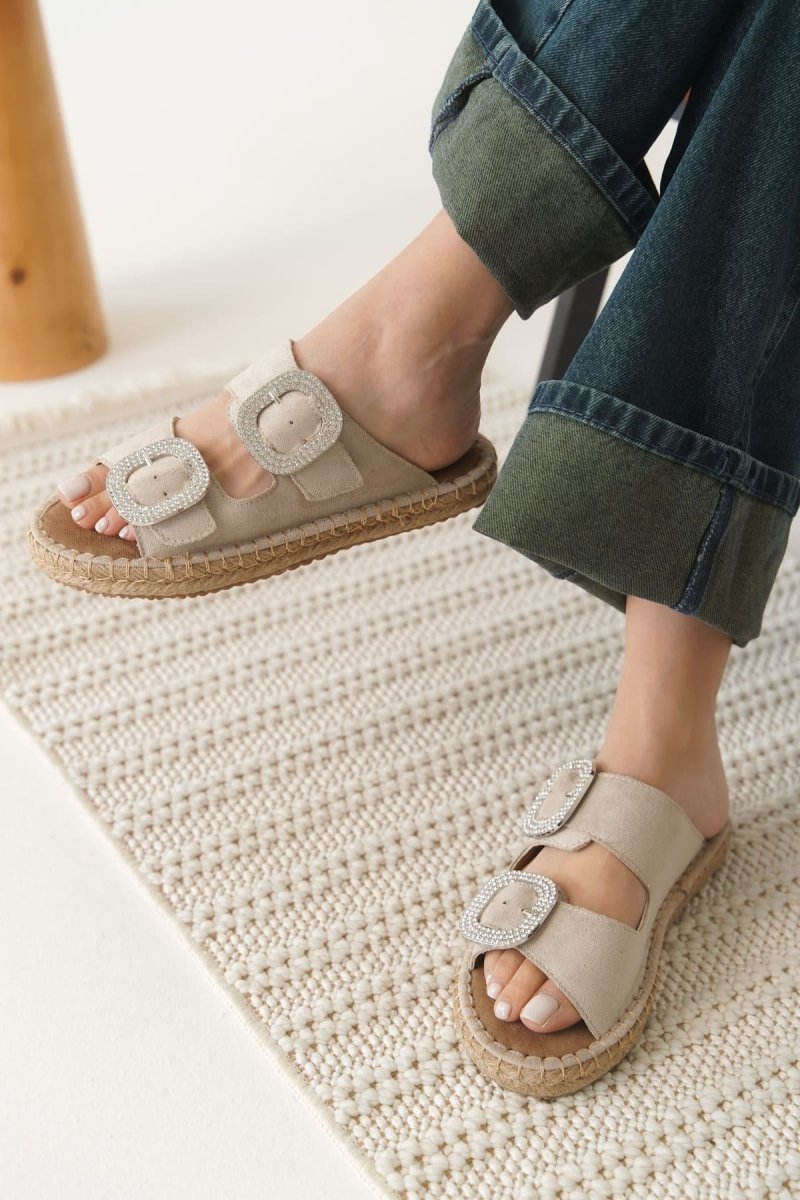 Scarpax Tyna Süet Bej Taşlı Kadın Terlik