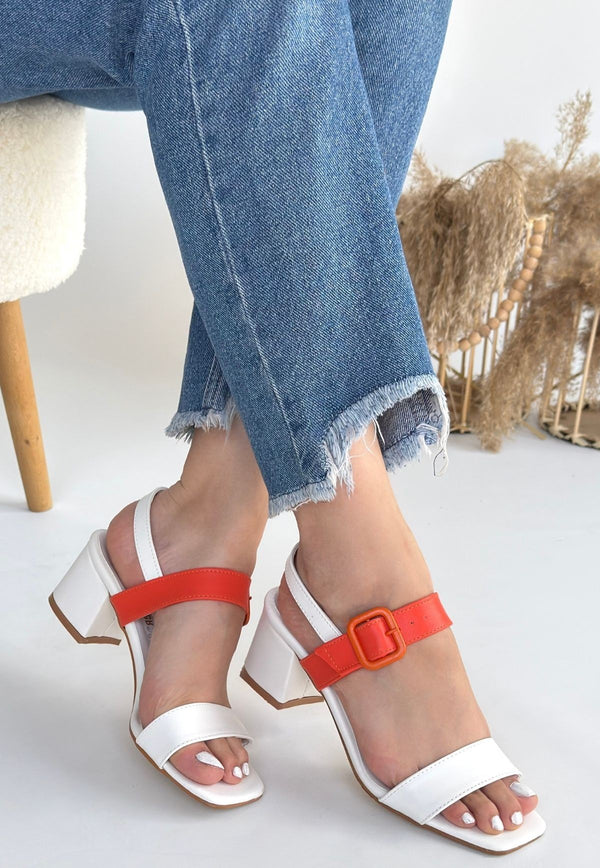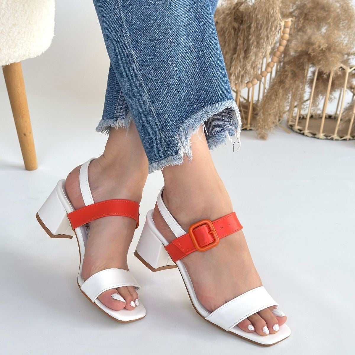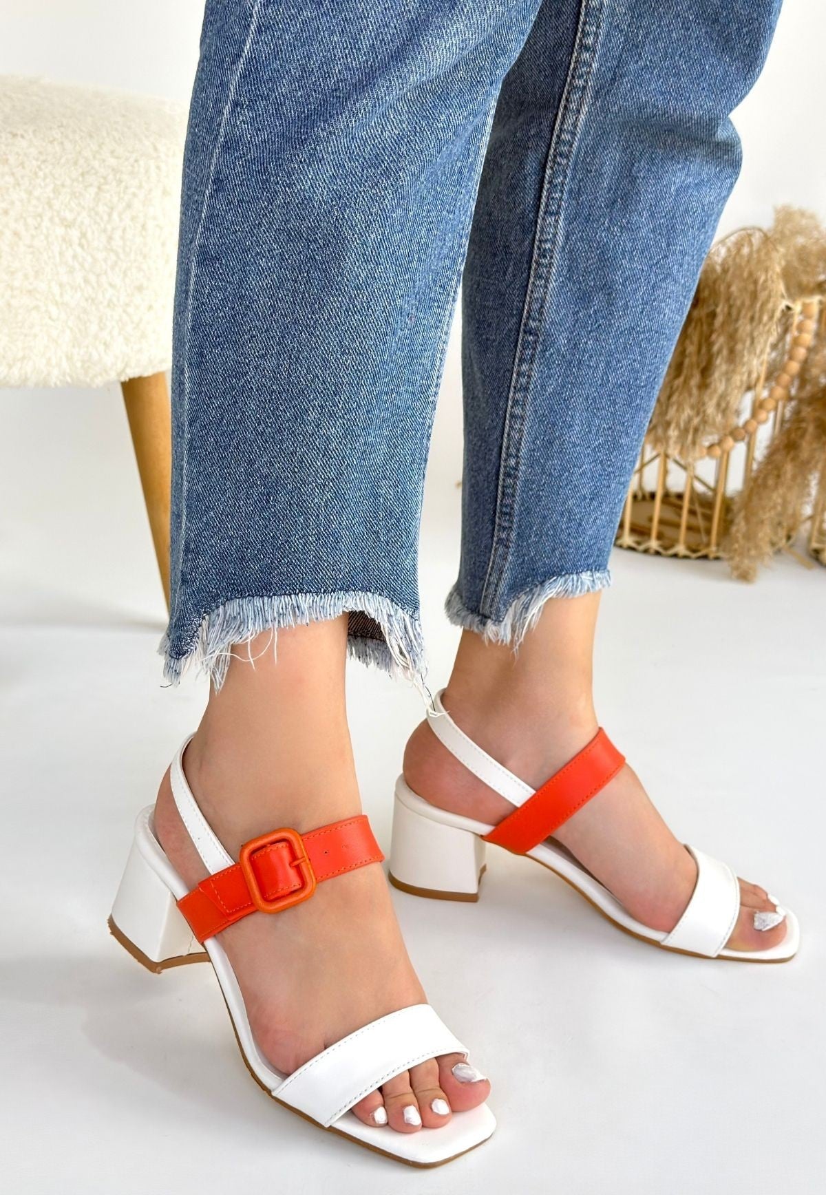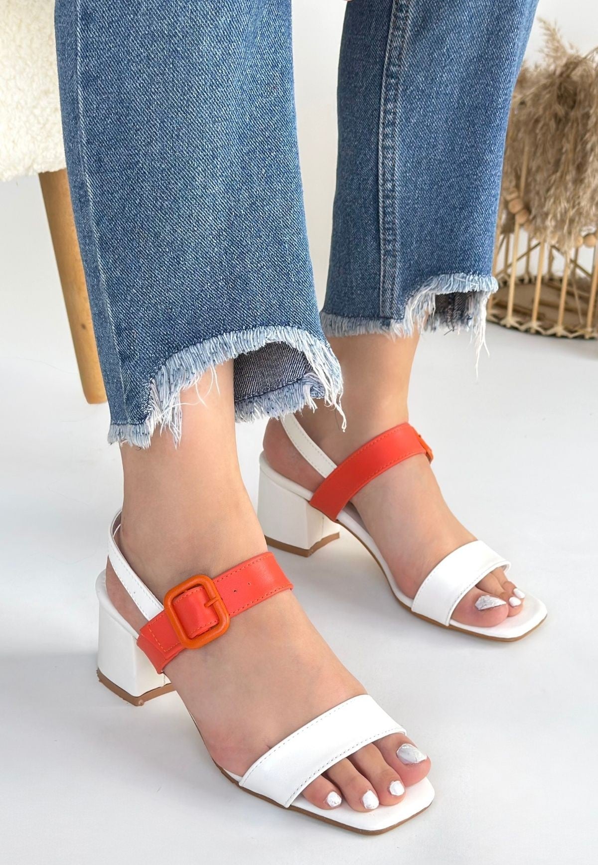 Scarpax Year Beyaz Cilt Turuncu Detaylı Beyaz Topuklu Ayakkabı