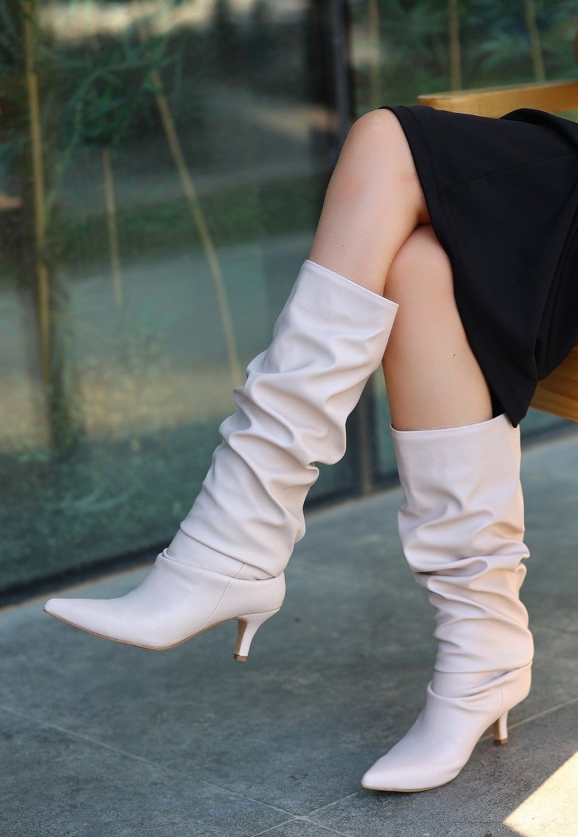 Scarpax Zelya Bej Cilt Topuklu Çizme