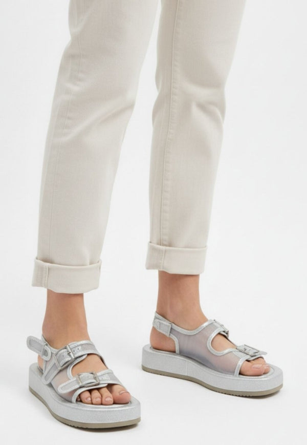 Scarpax – Sinna – Sandalen mit Tülldetail in Silberhaut