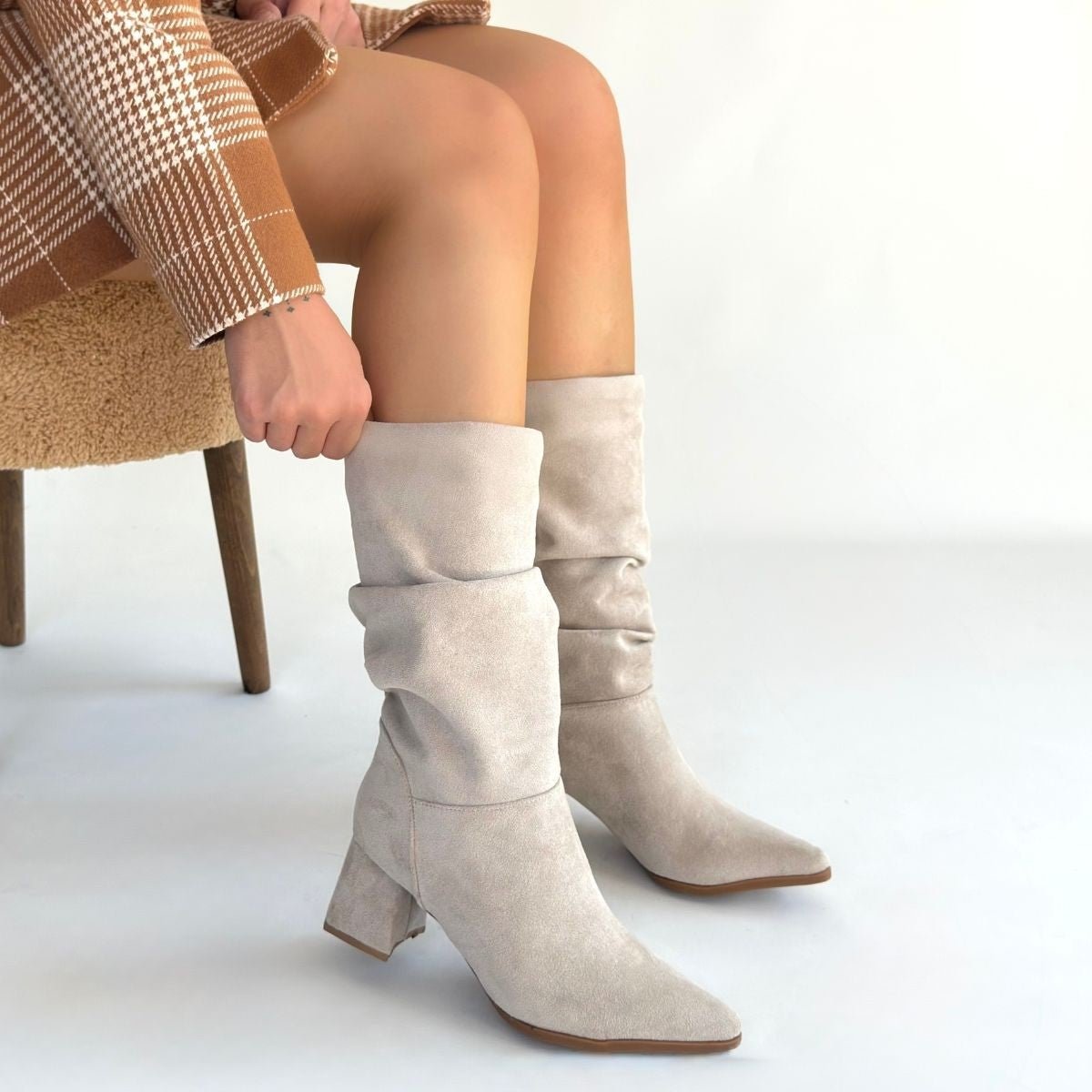 Scarpax – Titen – Beige Wildlederstiefel mit Balg