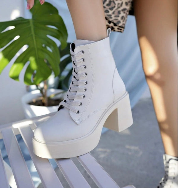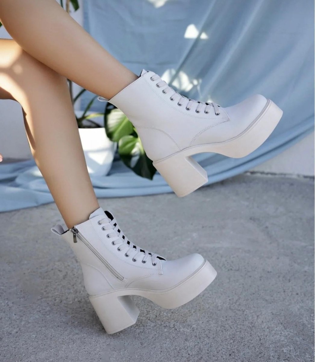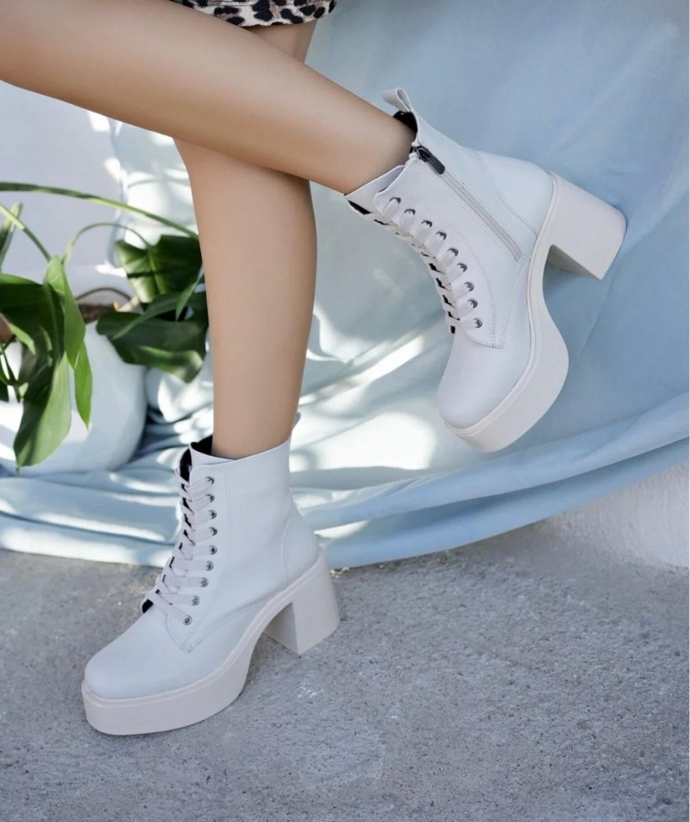 Scarpax – Tsan – Beige Lederstiefel mit Schnürung und Absatz
