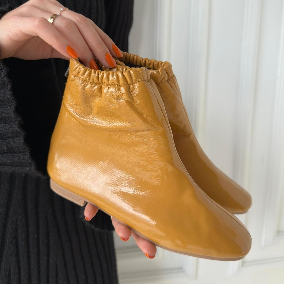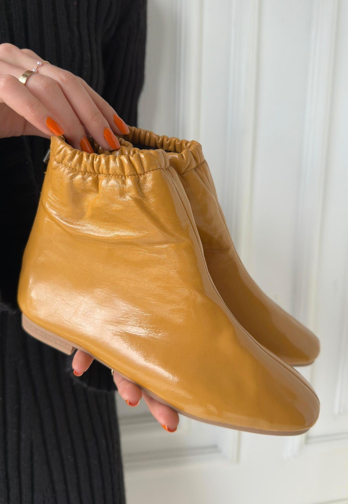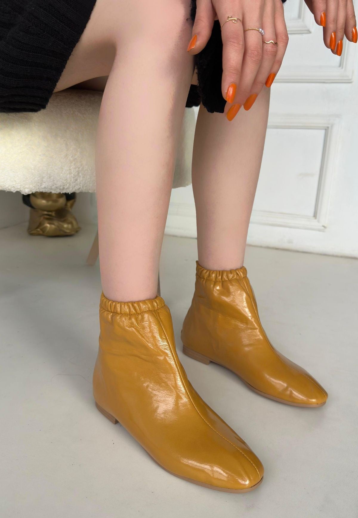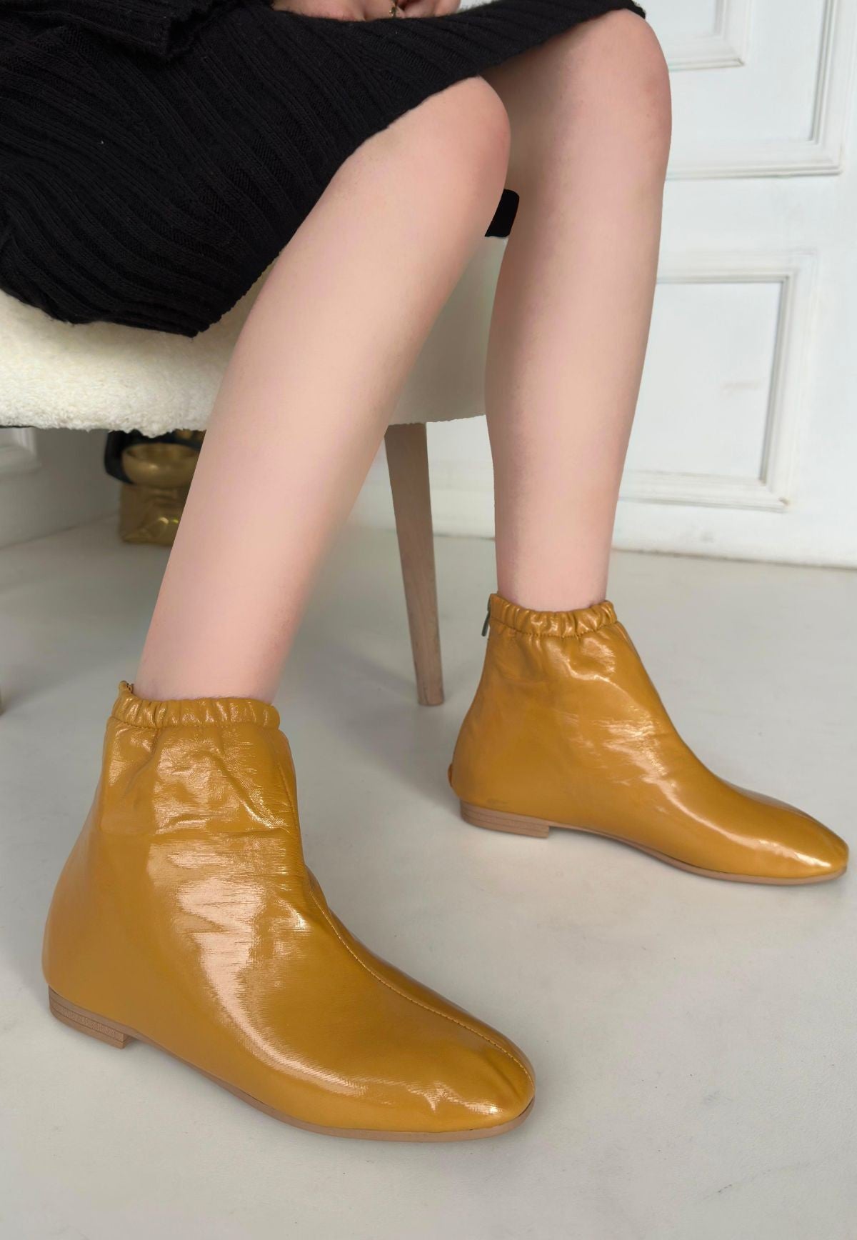 Scarpax Senffarbene Lacklederstiefel – Reißverschluss hinten, PVC-Sohle, 1 cm Absatzhöhe