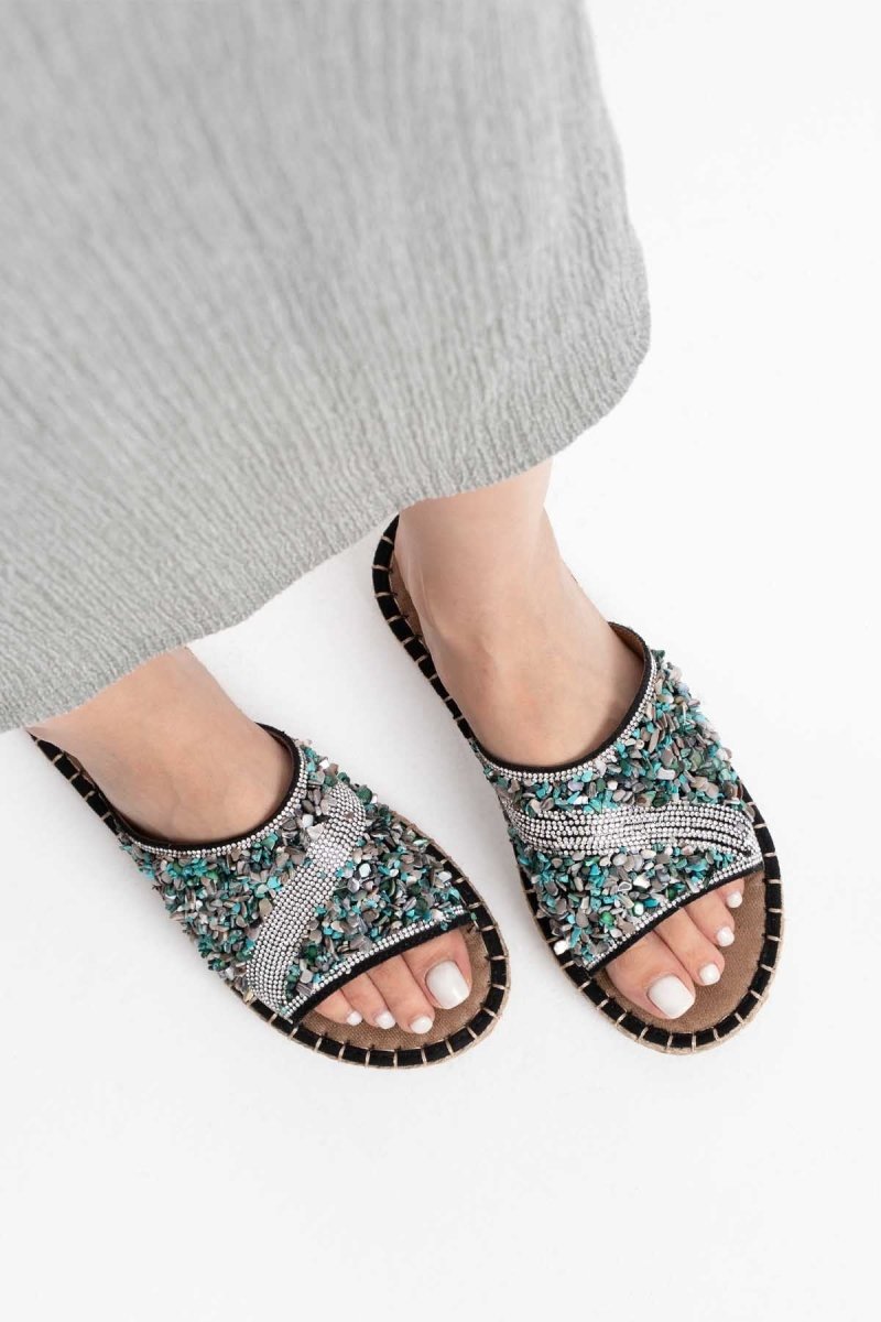 Scarpax Damen-Hausschuhe „Dennis“ mit schwarzer Steinstickerei – Eleganz und Komfort vereint