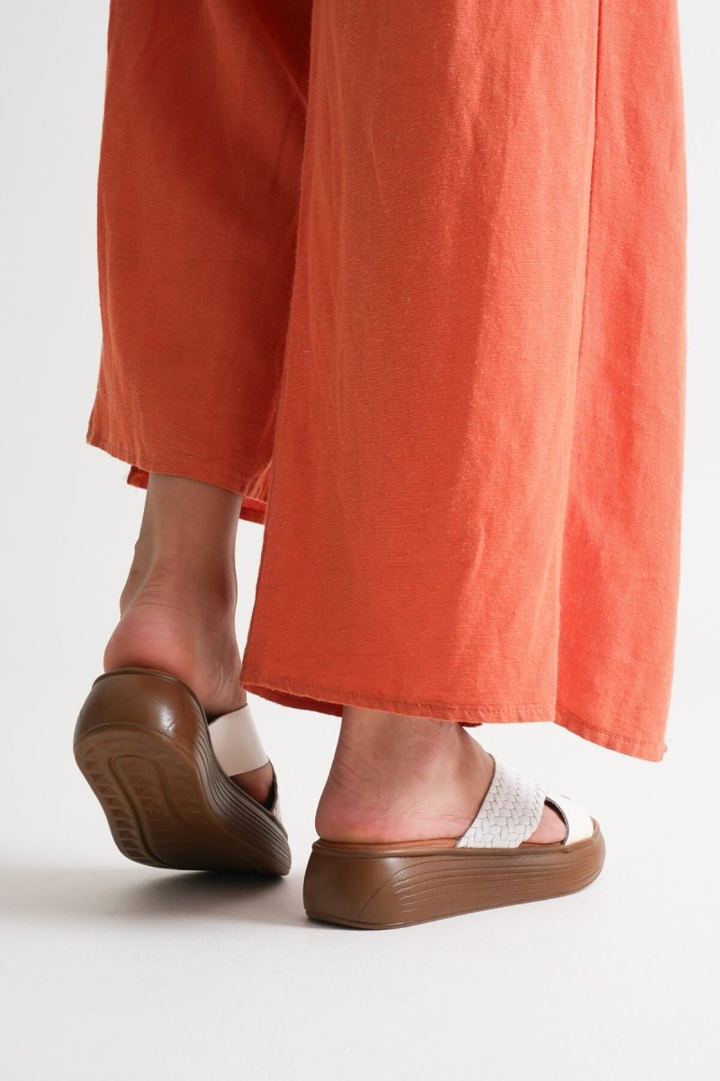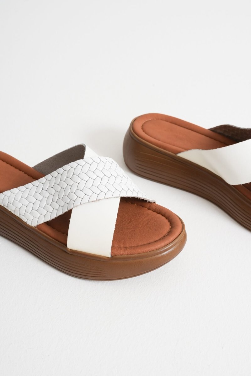 Scarpax Fayn Beyaz Hakiki Deri Terlik