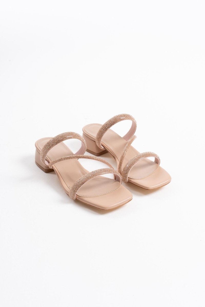 Diese aus hochwertigen Materialien gefertigten Slipper schmiegen sich perfekt an Ihre Füße. Dank ihres modischen Designs können Sie sie sowohl tagsüber als auch abends bequem tragen. Tanya Nude Slippers ergänzen eine Vielzahl von Outfits und unterstreichen Ihre Eleganz in jeder Umgebung.