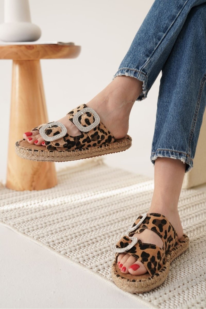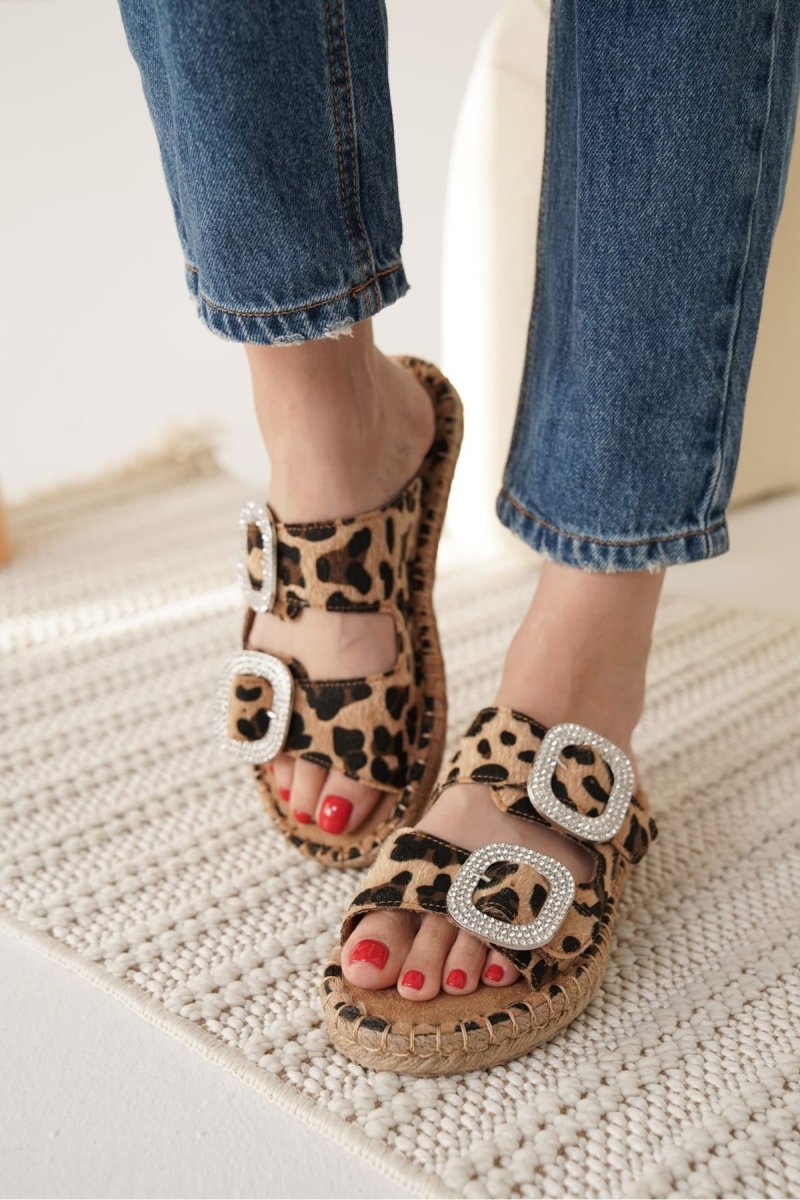 Scarpax Tyna Wildleder Leopard Stoned Damen Hausschuhe