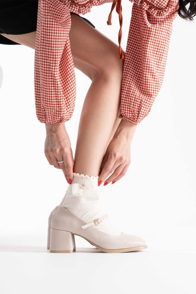 Scarpax Blown Bej Cilt Kadın Topuklu Ayakkabı