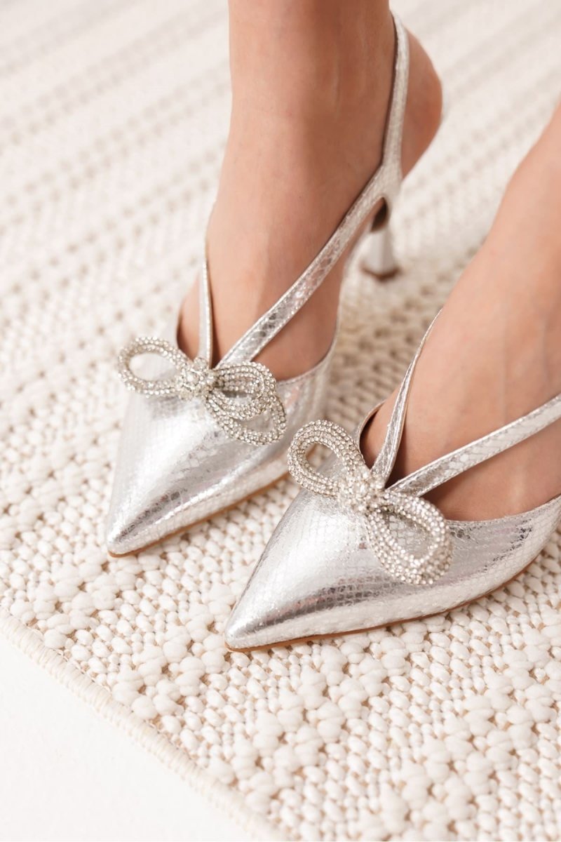 Der silberne Farbton der Schuhe passt zu jedem Outfit. Ihre glänzenden Details ziehen alle Blicke auf sich. Die hochwertigen Materialien bieten Langlebigkeit und Komfort. Ihr auffälliges Design macht sie ideal für das Büro und den Abend.